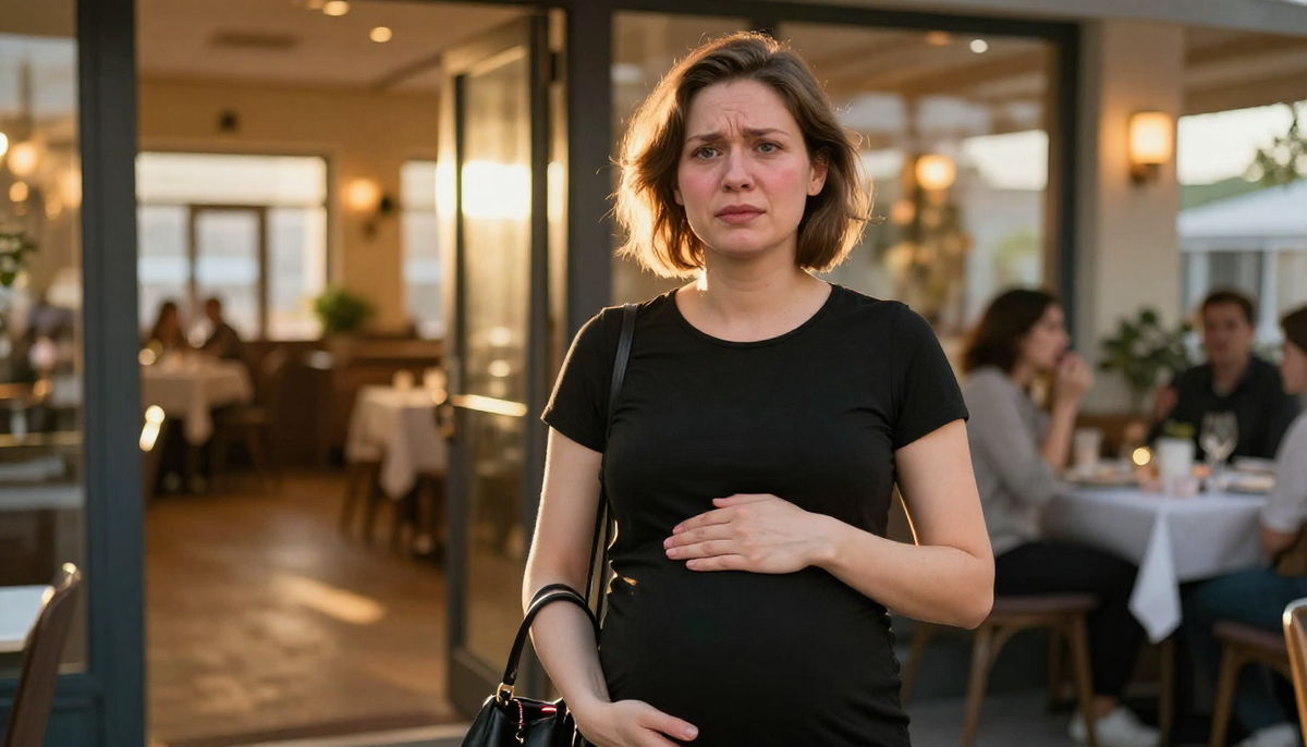 Я сидела справа от Кирилла. Восьмой месяц – живот упирался в край стола. Платье чёрное, свободное. Телефон в сумочке на коленях.