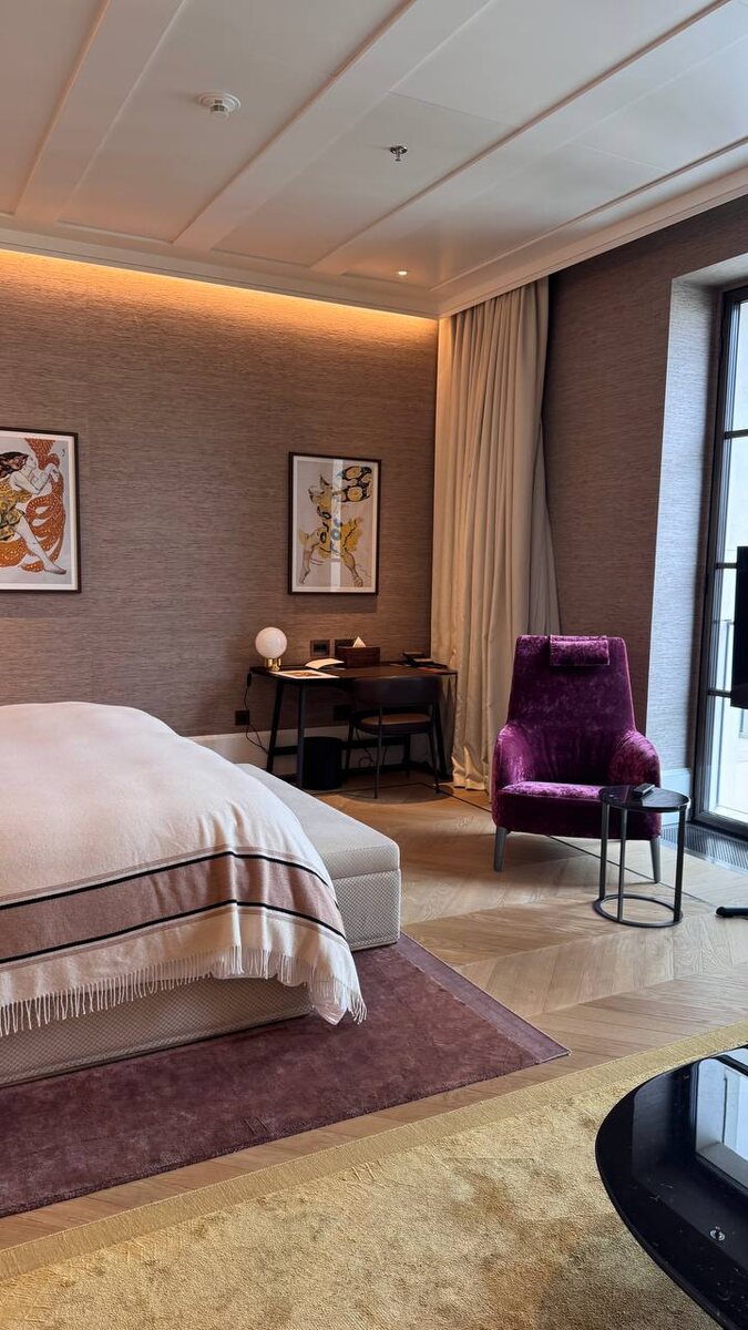 В Stella Di Mosca каждый номер продуман до мелочей. Меню подушек, меню спа, ароматы, барный стол, натурально дерево, узнаваемый интерьер Bvlgari… и, мечта каждой девушки - косметический стол с приборами Dyson. Это же вау😍 Ванные комнаты оформлены мрамором. Здесь стоит премиальная уходовая косметика! Плюс,обратите внимание на японскую сантехнику Toto, это круто! Пурпурные кресла, и мягкие ковры добавляют еще больше изысканности номерам… и вы только посмотрите на этот плед, я влюбилась! Он делает всю эту роскошь такой уютной! В отеле 8 категорий номеров, одинаковых по наполненности. На фото вы можете видеть номер делюкс, и полулюкс с террасой. 🌟А в следующем посте я покажу вам ту самую вишенку на торте, которую желает увидеть каждый - президентский номер с невероятным видом на Кремль. 🤔Интересны такие обзоры? Мне будет приятна обратная связь читать на канале: Я в телеграм