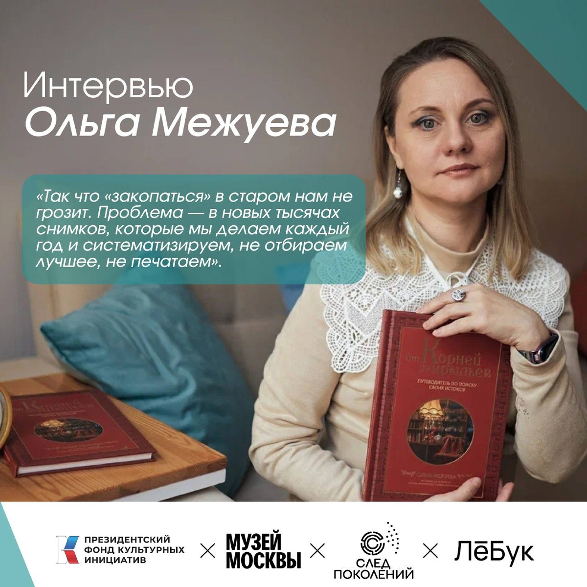 В рамках нашей выставки мы запускаем серию интервью с экспертами, которые будут выступать в лектории. И первый гость — человек, без которого невозможно представить профессиональное сообщество генеалогов! Ольга Межуева — историк фотографии, член Союза фотохудожников России, автор издательства «Бомбора», преподаватель программы «Генеалогия и история семьи» в ВШЭ и основатель сообщества «Клуб Хранителей семейной истории». Мы поговорили с Ольгой о том, как она связала жизнь с генеалогией и что узнают гости нашей выставки. 💬 Ольга, в профессиональном сообществе вас знают не только как генеалога, но и как фотохудожника. Как вы соединили эти две стихии? Меня больше знают как организатора мероприятий, чем как фотохудожника. Я историк фотографии. Первое образование — историческое (МГПУ), второе — фотокафедра журфака МГУ (фотожурналист). Но это не равно «фотохудожник». Благодаря фотографическому опыту и владению креативными методологиями я часто выступаю и на событиях для фотографов, включая м