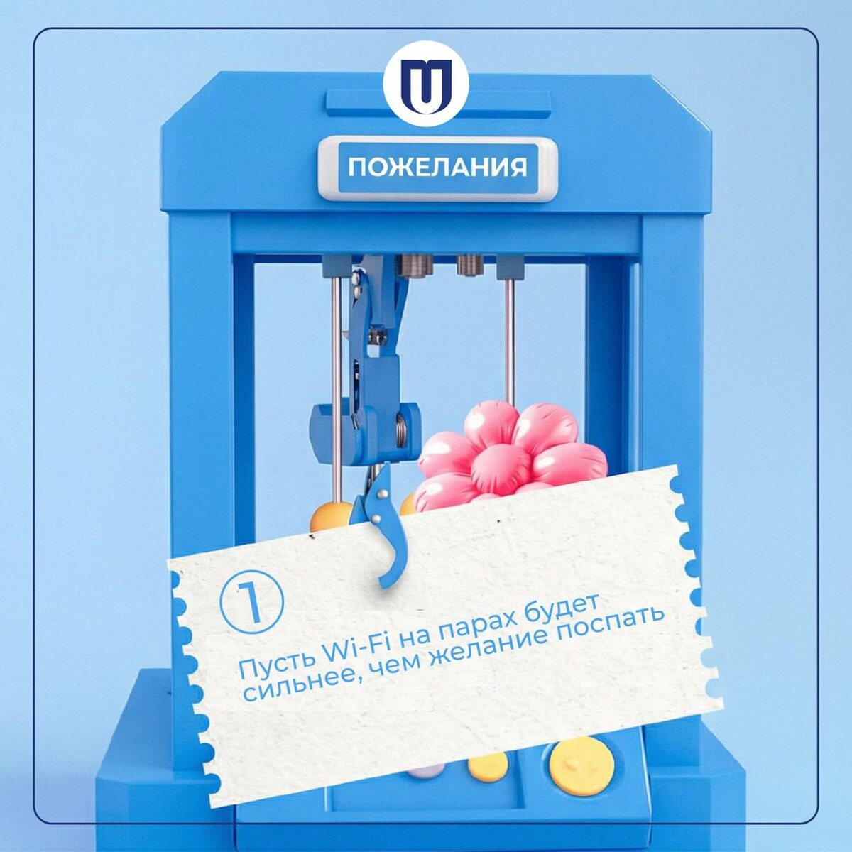 ! ✨ У нас для тебя маленький интерактив, который поднимет настроение и подарит мотивацию! 💙 Как это работает? 1️⃣ Поставь лайк или любую реакцию под этим постом; 2️⃣ Посмотри на последнюю цифру номера своей реакции; 3️⃣ Найди эту цифру в карточках и узнай своё персональное пожелание от университета! 💡 Не забывай: даже если цифра выпала не та, что хотелось — всё равно загляни в другие карточки. Иногда лучшее пожелание находится там, где не ждёшь! 👻 МАХ | 💙 ВК | 📝 ДЗЕН
