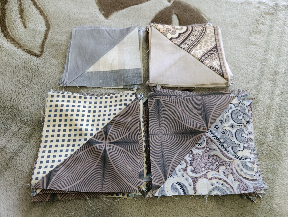 Я уже придумала, что я сделаю из этих блоков, но теперь мне их нужно больше. Просидела сделала ещё немного, но такой именно ткани больше нет. Нужно будет поковыряться в своих запасах и найти хоть что нибудь по цвету тогда похожее.