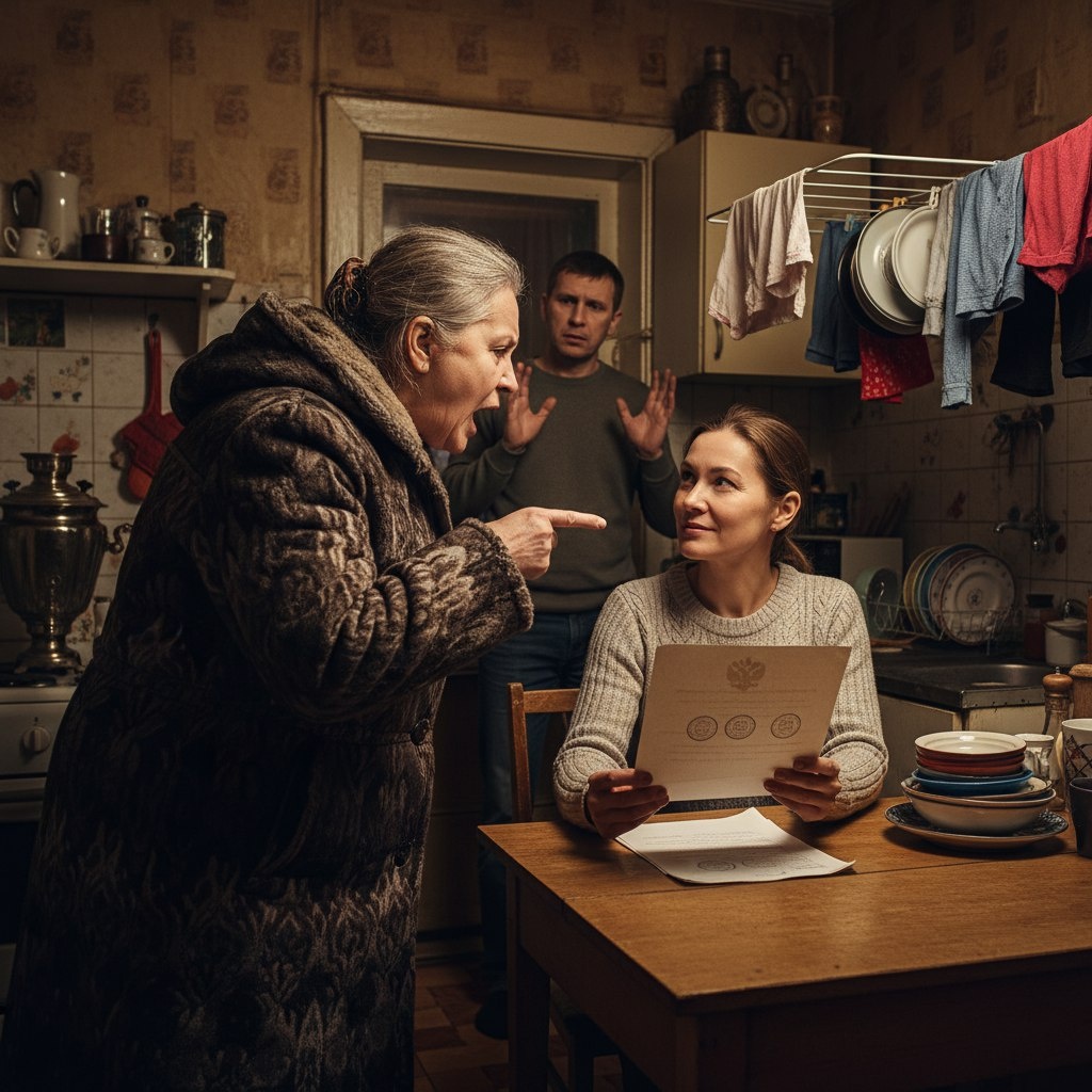 — Чего?! — свекровь резко обернулась. — Ты как со мной разговариваешь, дрянь неблагодарная? Я сейчас полицию вызову, тебя с нарядом вышвырнут из квартиры моего сына!