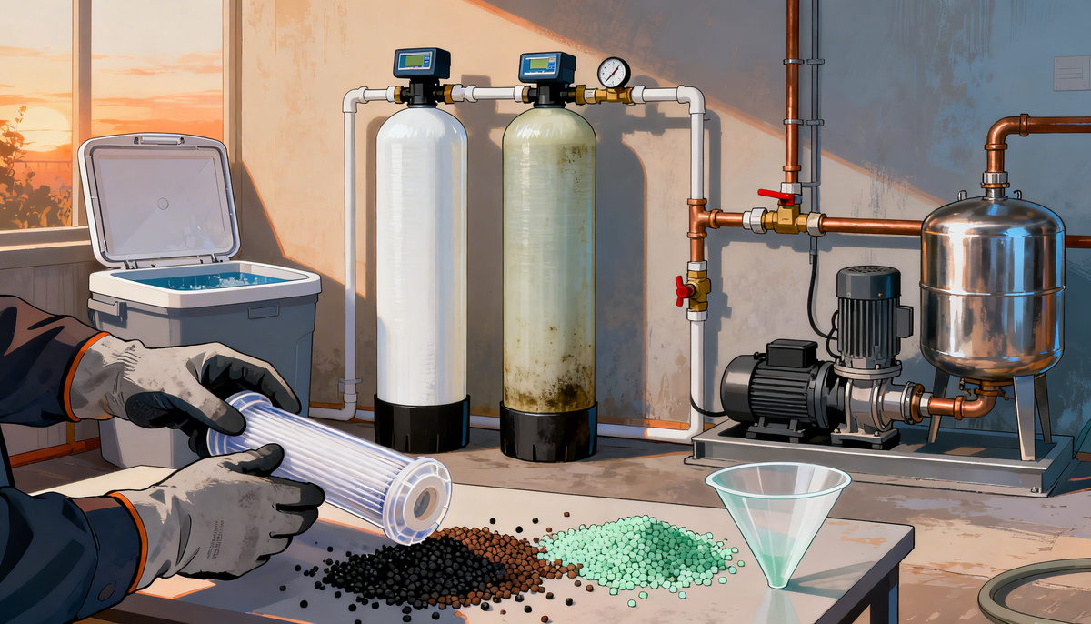 Плановое обслуживание включает проверку давления, режимов промывки, работы клапана, состояния загрузки, фильтра грубой очистки, солевого бака, насосного оборудования и обвязки. Если это делать регулярно, вы не доводите систему до режима, когда один мелкий сбой тянет за собой другой.