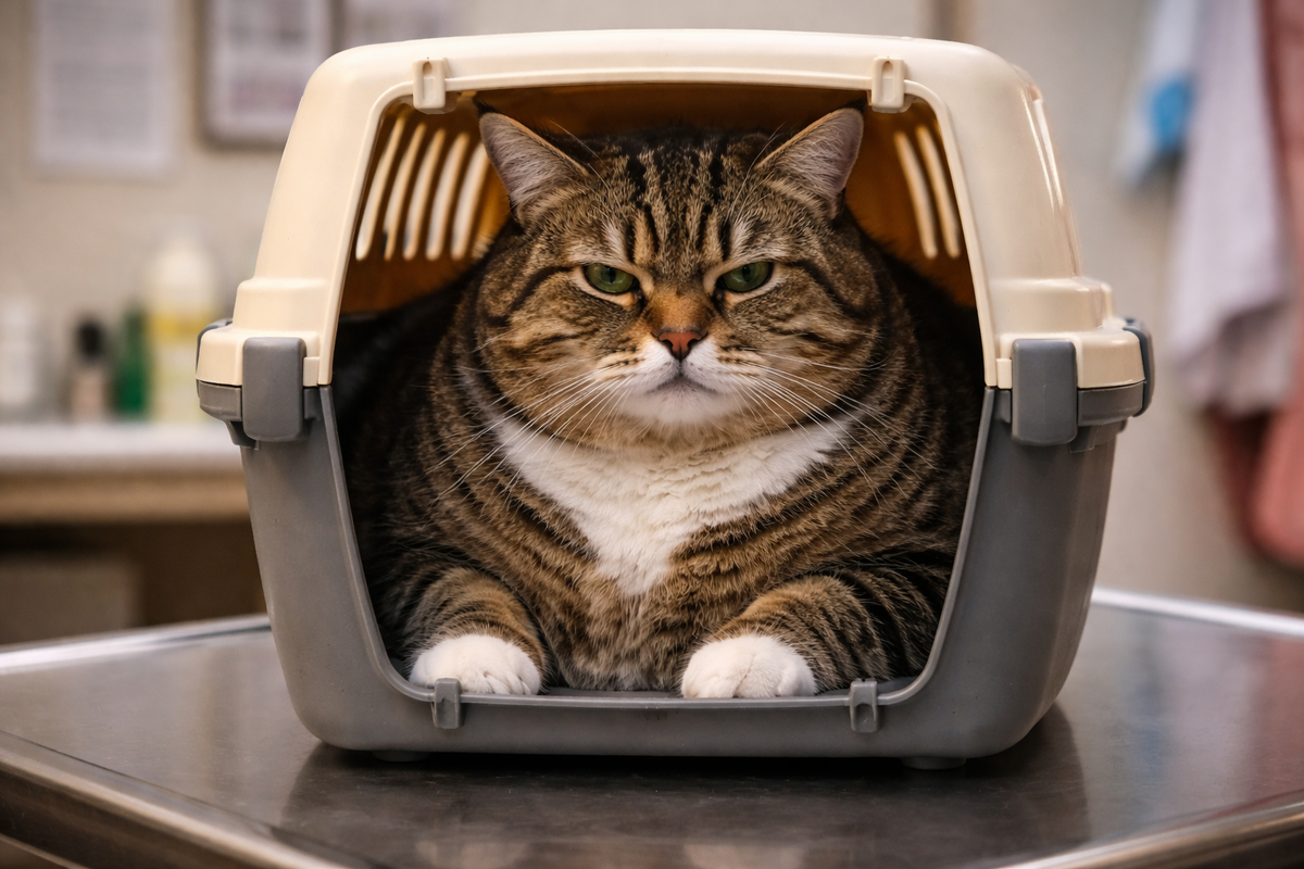 Кота привезли худеть в переноске, которая выглядела так, будто внутри везут не животное, а мелкого регионального начальника на выездную проверку. Переноска была большая, крепкая, с окошком, через которое на мир смотрело круглое недовольство с усами. Морда у кота была такая, будто он уже всё понял про человеческую подлость, но пока ещё собирает доказательства.