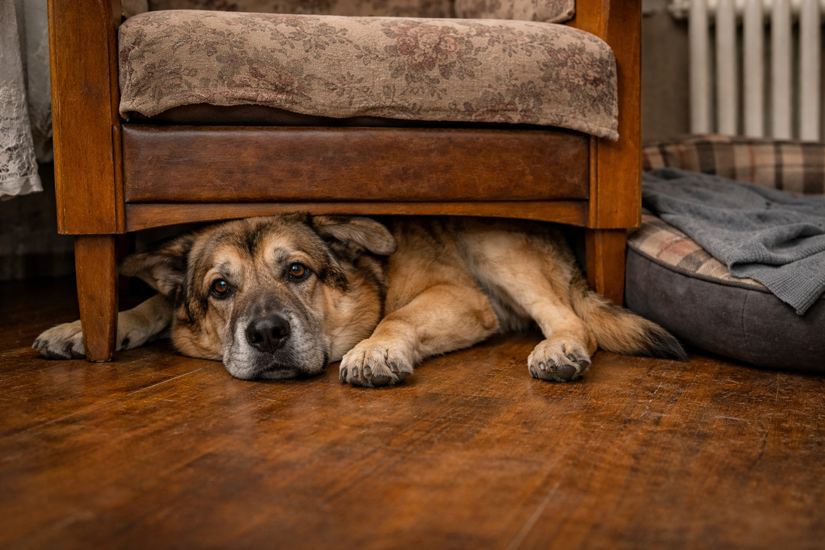 Кресло стояло у окна. Старое, широкое, с деревянными подлокотниками и пледом на спинке. Под ним действительно было место — только уже не для него. Для старого кота, для коробки, для домашнего тапка, который закатился и решил там зимовать. Но точно не для этого основательного пса. Я сразу представил, каким он был щенком: длинноногим, неуклюжим, ещё не понимающим собственных размеров, когда под это кресло можно было нырнуть с разбега, улечься в тени и считать себя спрятанным от всего мира.