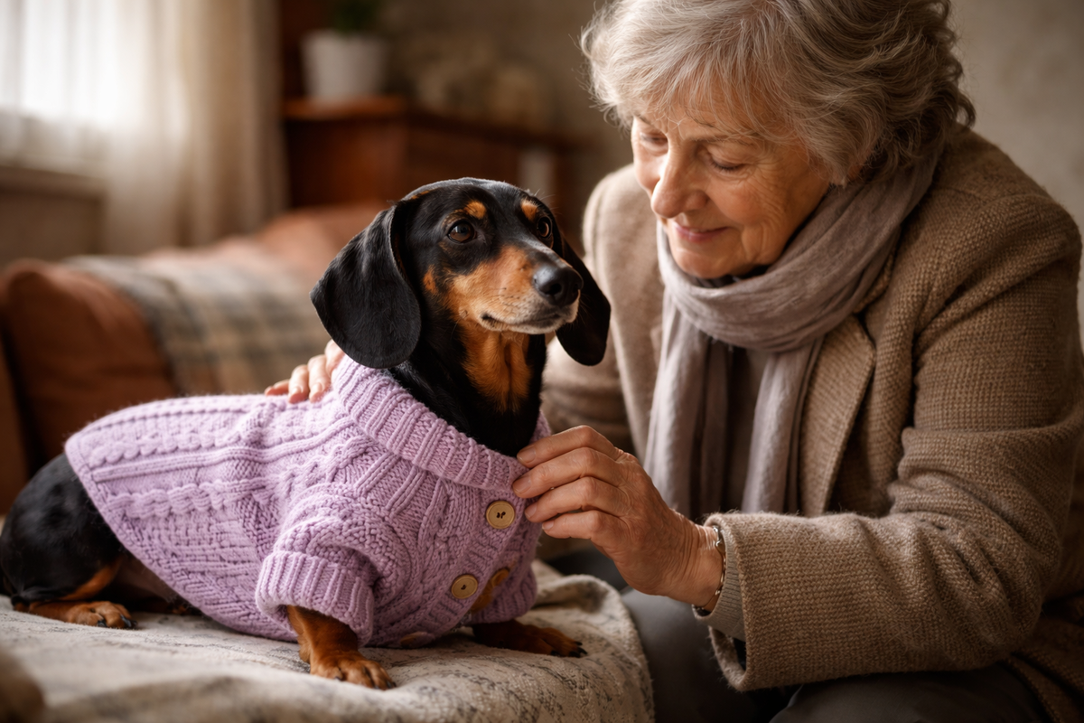 Потому что иногда пожилая женщина наряжает таксу в кофту не из глупости, не от скуки и даже не из чрезмерной любви к собачьей моде. А потому что у неё руки ещё помнят, как это — заботиться. Помнят, как вытряхивать рукав, чтобы не перекрутился, как поправлять воротник, как спрашивать: «Тебе не дует?» Даже если отвечать уже некому, кроме длинной таксы с глазами старой родственницы.