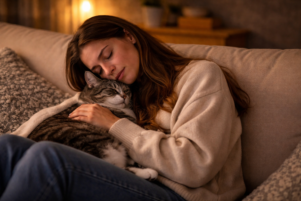 Потому что жалость — вещь липкая. От неё человеку потом неловко, как от слишком сладкого компота. А вот когда рядом кто-то — пусть даже кот с лицом уставшего аудитора — приходит ровно в тот момент, когда ты больше не играешь в “всё нормально”, и просто ложится на тебя всем своим тёплым весом, это уже не жалость.