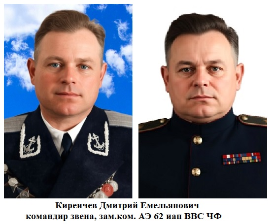 Николай Птицин Не мало случаев в нашем полку, когда летчик соответствует статусу награды Героя Советского Союза, а его награждают орденом Красного Знамени. А здесь случай совсем другой. Посылают на орден Красной Звезды, а присваивают орден Красного Знамени. Видно, в комиссии по наградам, хорошо ознакомились с его боевыми успехами и повысили статус награды. А подводя итог его боевой работы в годы войны, можно было и на Героя Советского Союза посылать. 350 боевых вылетов и 101 на штурмовку. Это ли не показатель для Героя. Из цикла: «Листая страницы истории 62 иап ВВС ЧФ и авиации ПВО страны». Киреичев Дмитрий Емельянович, капитан, командир звена 2 аэ 62 иап Выписка из приказа Ком. ВВС ЧФ от 5.05.43 №015 п.261 командира звена 2 аэ 62 авп Киреичева Дмитрия Емельяновича назначить зам. ком. 2 аэ того же полка. Заместитель командира 2 аэ капитан Киреичев Д.Е. с 17 ноября временно приступил к руководству 2 аэ. (приказ 62 иап №67 §2 от 19.11.43г.). Русский. 06.11.1914 года рождения в деревне Ус