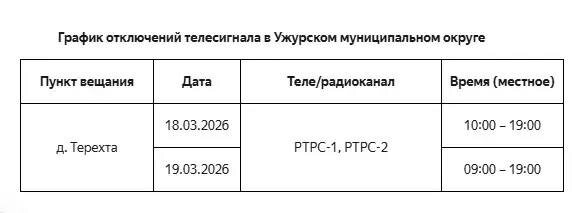 По данным специалистов филиала РТРС «Красноярский КРТПЦ» в марте в Ужурском муниципальном округе состоится внеплановая остановка