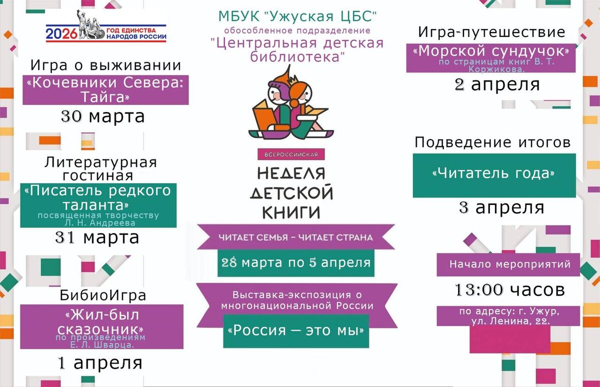 Центральная детская библиотека проведёт 📚увлекательные мероприятия в рамках Всероссийской Недели детской книги