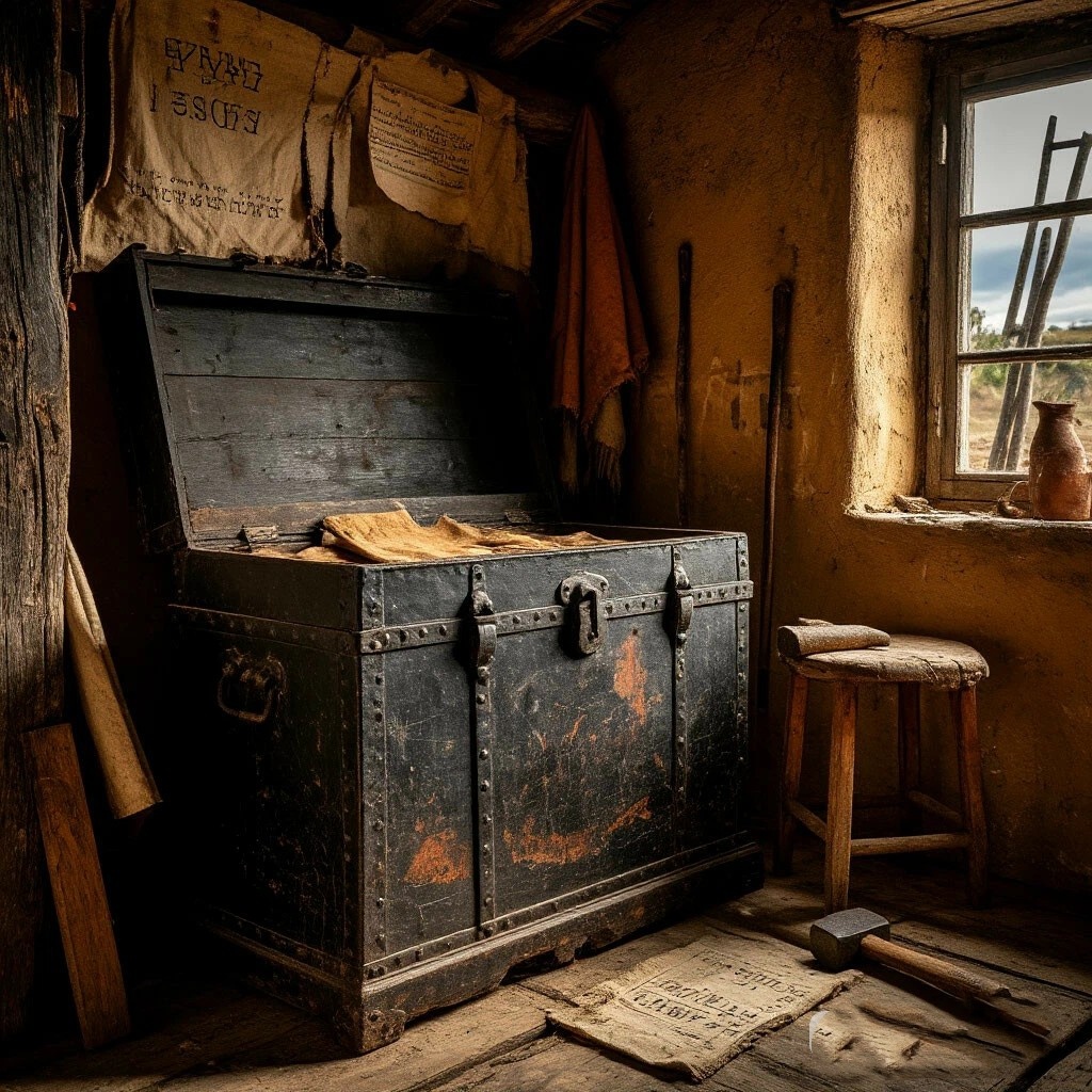 Фотографии кончились. На дне сундука, прикрытый холстиной, лежал небольшой свёрток. Дед потянулся к нему не сразу — словно чувствовал, что здесь самое главное. Руки его, и без того дрожащие, задрожали сильнее, когда он развязал тесёмки и развернул ткань.