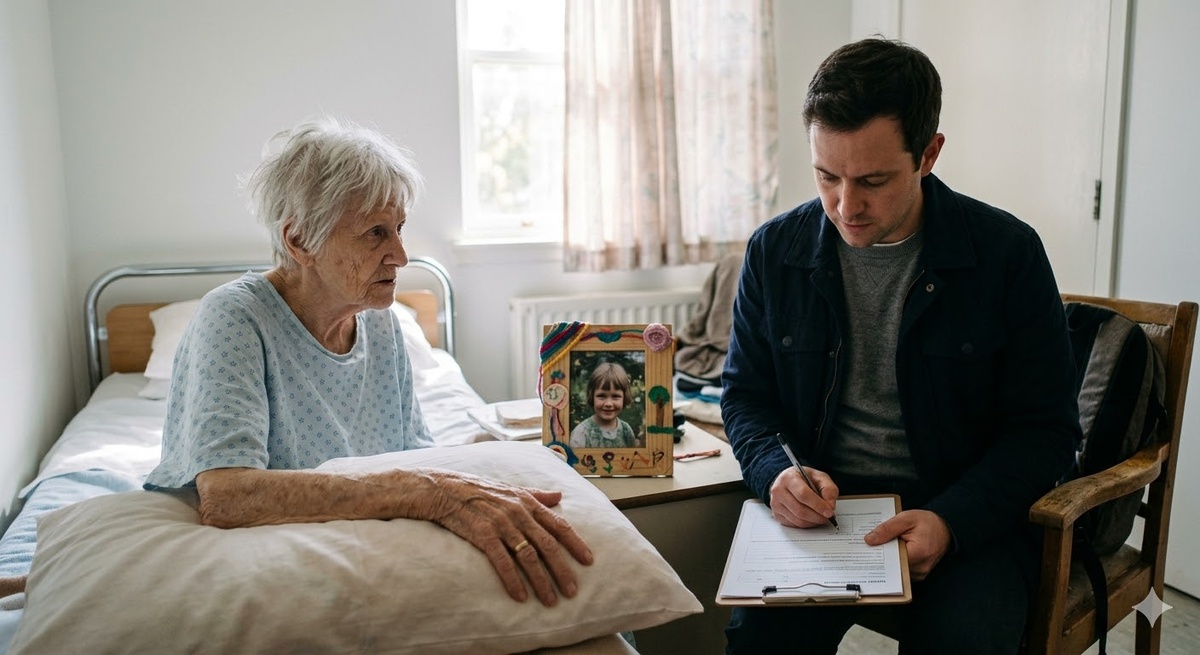 Восемьдесят два. Дом престарелых. Палата двенадцать. Сколько ещё можно ждать — ей? И сколько ещё можно бояться — ей самой?