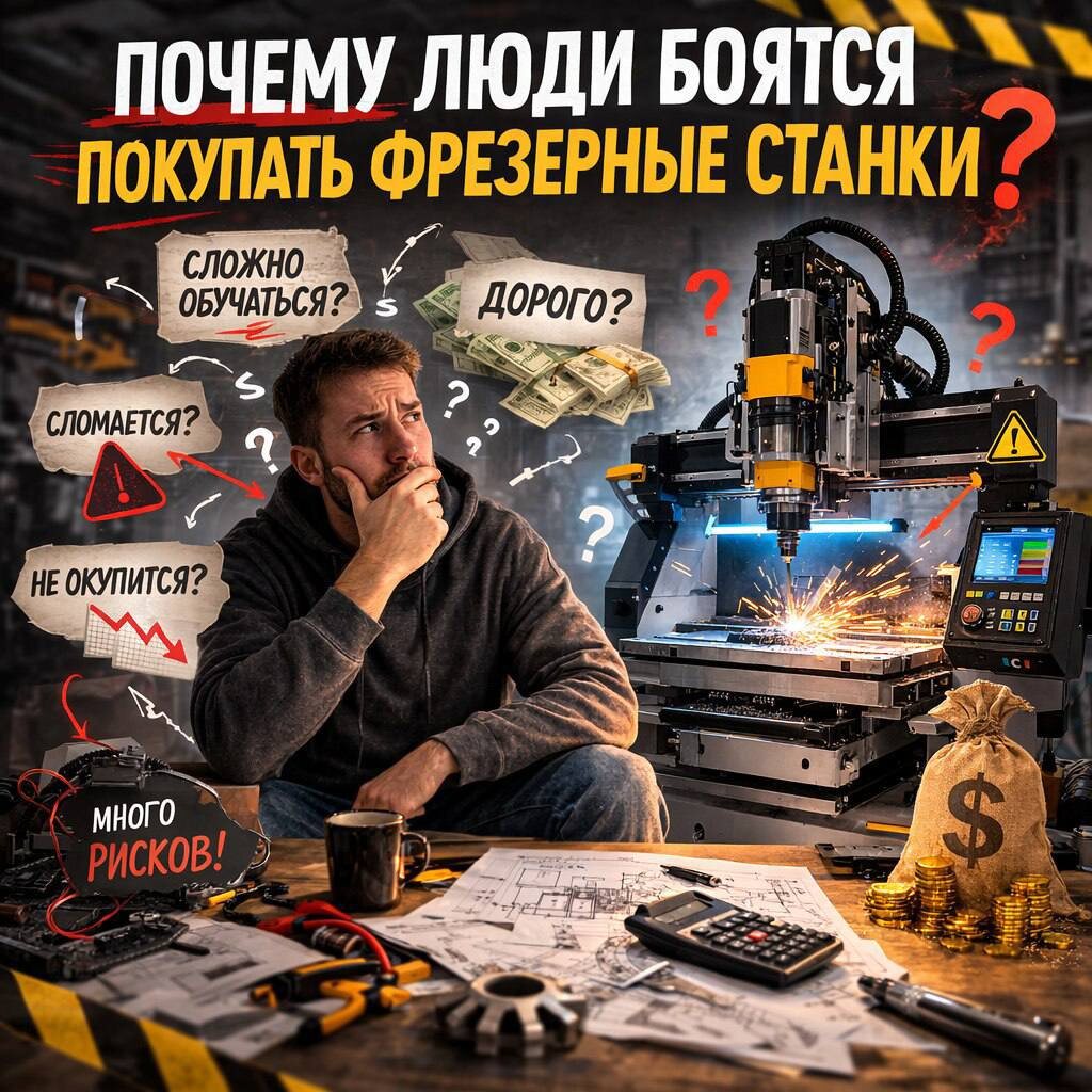 Главная боль клиента перед покупкой станка с ЧПУ — это не сложность в обучении и не поломки. Это риск остаться с пустым кошельком: «Я вложу деньги, а заказов не будет». Да, такое может быть, но мы рекомендуем: пока изготавливается станок, вы подготавливайте почву, анализируйте рынок, ищите клиентов, изучайте работу с