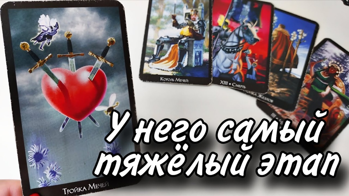 Карты: Семёрка Мечей, Повешенный, Рыцарь Кубков