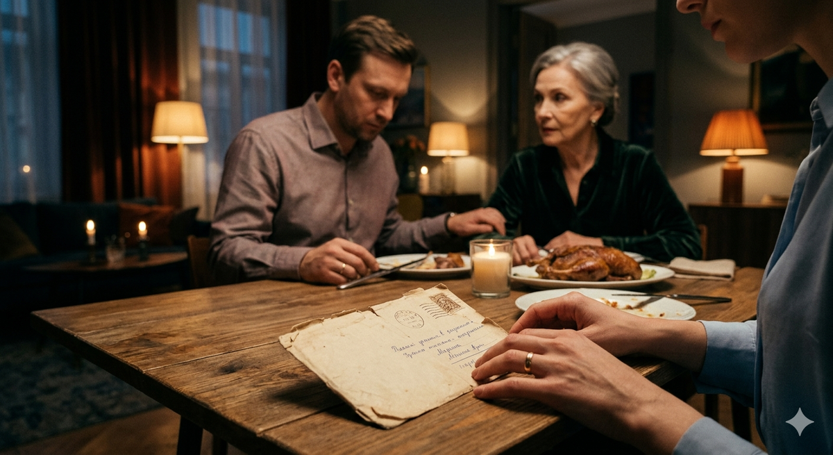 Она протянула руку и коснулась конверта. Бумага была шершавой и тёплой от света свечей. В этот момент ужин на двоих, превратившийся в семейный совет троих, перестал быть декорацией к измене. Он стал началом долгого пути домой.