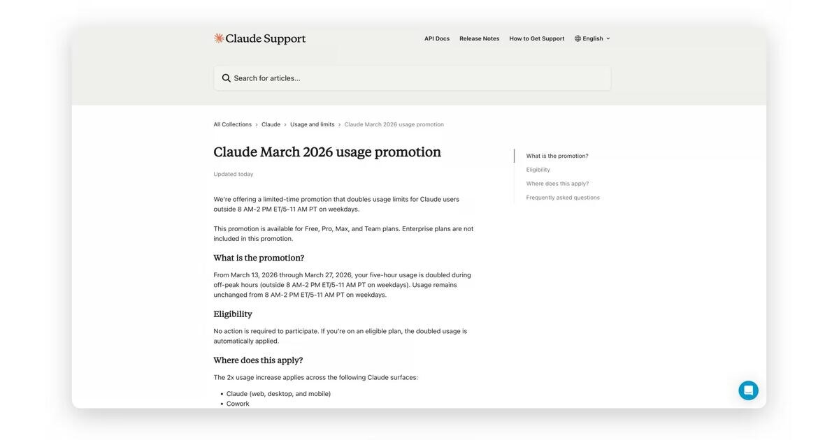 Anthropic объявила о временном удвоении лимитов запросов для всех пользователей модели Claude с 13 по 27 марта 2026 года. Акция действует в непиковые часы и распространяется на все тарифы, кроме Enterprise — это позволит продлить работу с искусственным интеллектом почти на весь день по московскому времени. Ещё по теме: Согласно условиям, в будние дни двойные лимиты активны с 21:00 до 15:00 следующего дня, а в выходные — круглосуточно. В этот период утром и днём можно активно использовать Claude для сложных задач и кодинга, а в пиковые часы в США с 15:00 до 21:00 лимиты остаются обычными. ⚡Подписывайтесь на канал itzine и канал подкаста ForGeeks в Telegram! Там самые свежие новости про технологии, гаджеты и космос. Промо действует сразу для всех версий Claude: обычного, Claude Code, Cowork, а также интеграций с Excel и PowerPoint. Чтобы получить бонус, не нужно активировать что-то вручную — лимиты увеличатся автоматически. Это выгодно для пользователей, которые привыкли использовать AI