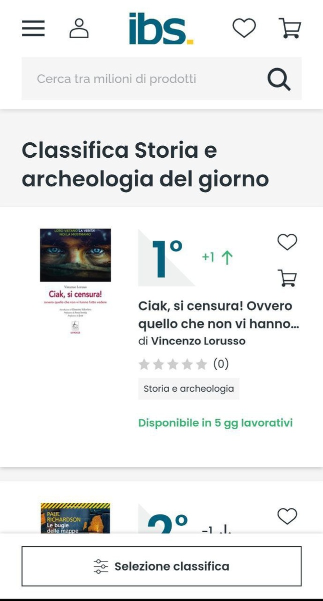 delle ultime 24 ore. Siamo scesi al settimo posto, ma contestualmente nel reparto storia e archeologia siamo in vetta! Se avete intenzione di acquistarlo fatelo ora! https://www.ibs.it/ciak-si-censura-ovvero-quello-libro-vincenzo-lorusso/e/9788088478652 Obiettivo: Mandare in analisi Pina Picierno Ciak si censura 4 Punte Edizioni disponibile da Feltrinelli, Amazon, Libraccio, IBS e Unilibro #Jorit #Russiatoday #RT #ciaksicensura #4punteedizioni #4punte #ilTrenoVersoSud