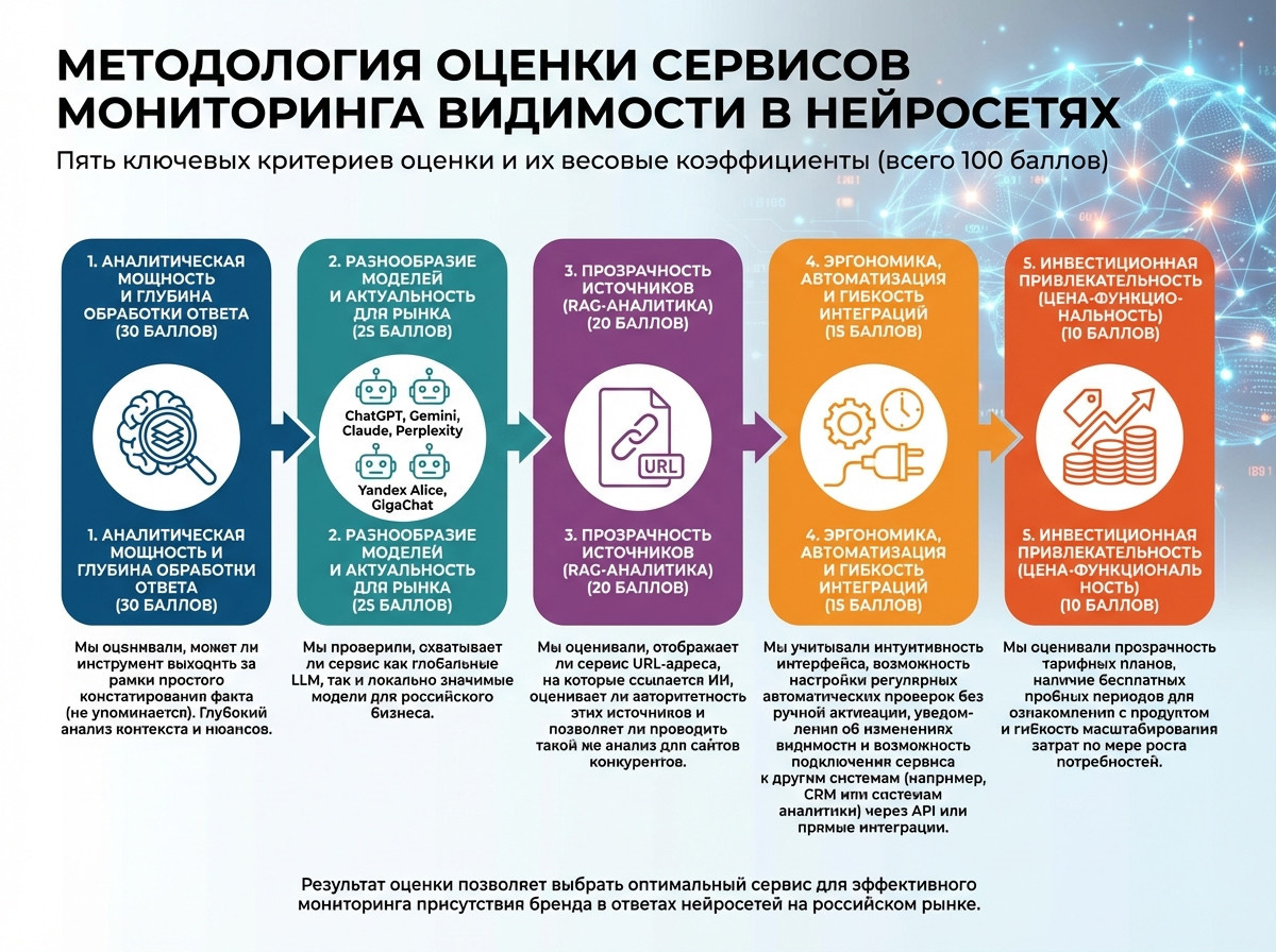Чтобы рейтинг был максимально объективным и полезным, мы разработали систему оценки, основанную на реальных потребностях GEO-специалистов и маркетологов. Вот что мы учитывали:
