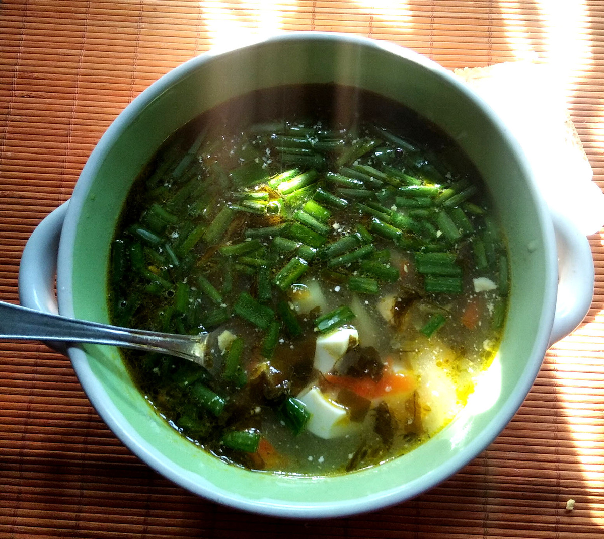 Щавель уже продают на рынке, а на грядках только-только показался. И уже так хочется витаминного щавелевого супчика, или, как его у нас на Дону называют, — зелёного борща. И что нам может помешать сварить его? Да ничего не помешает! Те, кто постится, могут сварить постный борщ, а те, кто не придерживается поста, могут использовать мясной бульон. В любом случае будет вкусно. Ингредиенты (на кастрюлю 4 л): Процесс приготовления: 1. Варим мясо. В зависимости от того, какое мясо взяли, время приготовления может быть разным. Курица варится быстро, минут 40, свинина дольше — около 1 часа, говядина — около 1,5 часов. После того, как мясо готово, достаём его из кастрюли, освобождаем от косточек, нарезаем на кусочки и отправляем назад в кастрюлю. Добавляем соль и перец. 2. Нарезаем мелко репчатый лук и соломкой морковь. Обжариваем на сковороде, налив пару ложек растительного масла. 3. Картофель очищаем, моем и нарезаем на кубики или соломкой. Опускаем картофель в бульон. После того