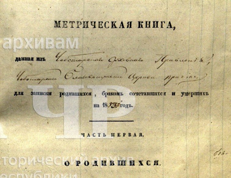 Метрические книги о рождении, браке и смерти. ГИА Чувашской Республики (ГИА ЧР), фонд № 225, опись № 3, дело № 122, стр. 139 скан. Метрическая книга, данная из Чебоксарского духовного Правления Чебоксарской Благовещенской церкви причту, для записки родившихся, браком сочетавшихся и умерших на 1853 год. Часть вторая. О бракосочетавшихся. Стр. 162 скан. Генварь. № 1. 11 числа. Жених: Чебоксарского мещанина Климента Константинова Абалымова сын Яков Климентов Абалымов, православного вероисповедания, первым браком. 20 лет. Невеста: Девица Анастасия Алексеева, дочь Алатырского мещанина Алексея Егорова Одинцова, православного вероисповедания. 22 лет. Поручители: по женихе: Чебоксарские мещане Александр Валерианов Шепелев и Александр Петров Давидов. По невесте: Чебоксарские ж мещане Порфирий Владимиров Петров и Яков Михайлов Сапожников. Таинство венчания совершил протоиерей Андрей Скарабевский. Дьячек Василий Тимяшевский. Пономарь Даниил Тимяшевский. https://yandex.ru/archive/catalog/f8d290a