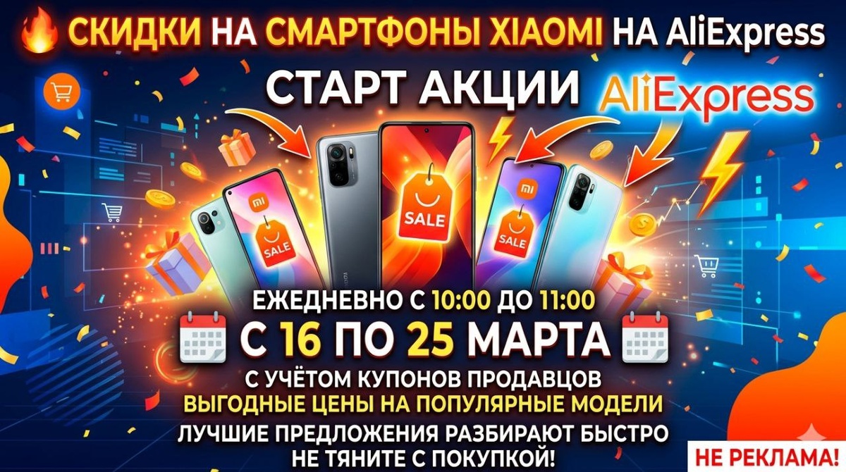 На AliExpress стартовала акция на смартфоны от Xiaomi — скидки действуют ежедневно с 10:00 до 11:00 в период с 16 по 25 марта. С учётом купонов от продавцов можно поймать действительно самые выгодные цены, особенно на очень популярные модели. Если планировали обновление — лучше не тянуть: окно всего час, а предложения разбирают быстро. 🤩 PRO News: мы там, где вы!