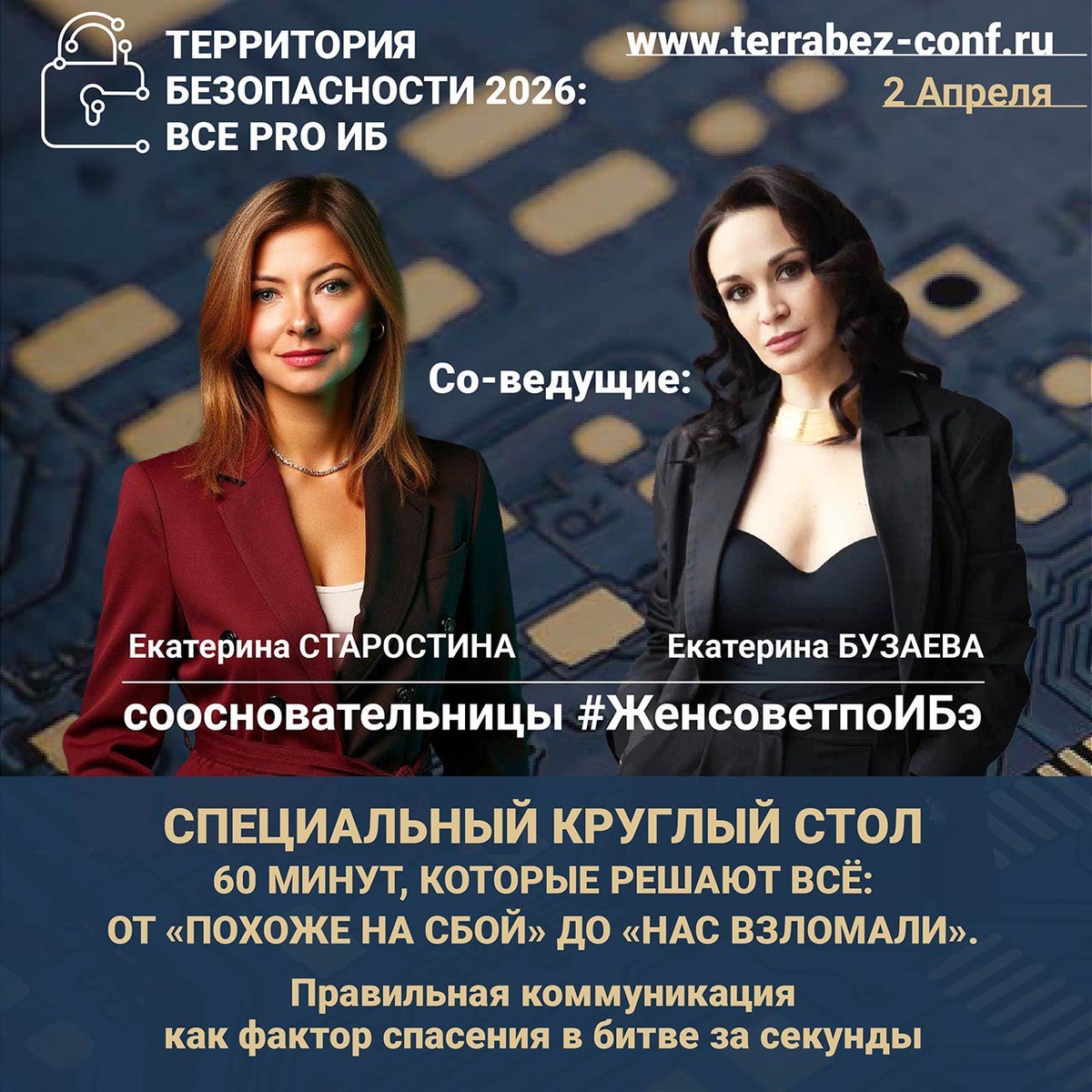 🛡 Сайт лежит. СМИ звонят. Регулятор ждёт. Сбой или атака? И что кому говорить? Первые 60 минут после инцидента — самые дорогие. И именно в этот момент CISO, ИТ-директор и PR обычно тянут в разные стороны. 2 апреля на форуме «Территория Безопасности» собираем всех троих за одним круглым столом. Круглый стол построен на реальных сценариях: сбой или атака, слив базы, звонок из редакции. Три блока: диагностика, коммуникации, разбор полётов. Один общий план вместо паники. 🎙 Со-ведущие: Екатерина Старостина и Екатерина Бузаева 🎼 Спикеры: Татьяна Фомина (HeadHunter), Анастасия Гайнетдинова (Whoosh), Мона Архипова, Ника Комарова ➡️ Руководителям ИБ-департаментов от компаний-заказчиков — бесплатно 🖇 Регистрация здесь MAXимально на связи #GDS #анонс
