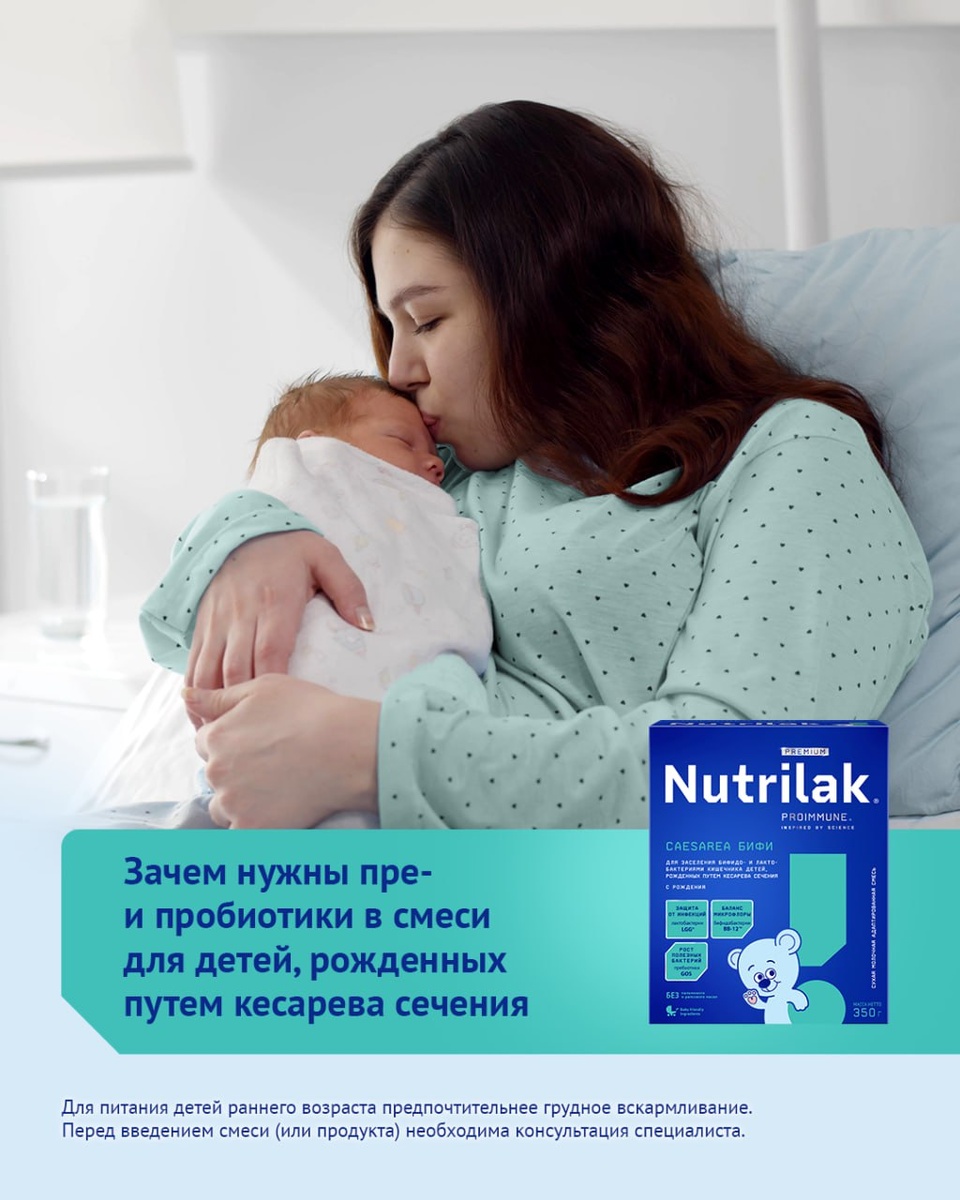 💙💙💙 Зачем нужны пре- и пробиотики в смеси для детей, рожденных путем кесарева сечения У детей, которые родились с помощью кесарева сечения, есть особая потребность – поддержка в формировании здоровой микрофлоры кишечника с первых дней. Именно для этого созданы специальные смеси, такие как Nutrilak Premium Caesarea БИФИ. В их составе есть особые компоненты – пре- и пробиотики. - Пробиотики – это полезные бактерии, которые заселяют кишечник и помогают ему работать правильно - Пребиотики – это «пища» для таких бактерий, которая помогает им прижиться и расти Вместе они создают условия для здорового баланса микрофлоры, который так важен для иммунитета и комфортного пищеварения малыша. 🥛 Какие бактерии содержит смесь и зачем они нужны? - Лактобактерии L.rhamnosus LGG – это пробиотик №1 в мире, который безопасен для детей с рождения. Они помогают защитить малыша от респираторных и кишечных инфекций, поддерживая естественные защитные силы организма - Бифидобактерии BB-12 – заселяют к