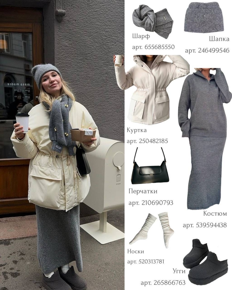 Весна 2026 — это про комфорт, мягкие силуэты и продуманные детали. В тренде остаются натуральные оттенки, спокойная база и яркие акценты, которые легко адаптировать под повседневную жизнь. Такие образы не требуют сложных сочетаний, но при этом выглядят стильно и современно. Ниже — пять готовых комплектов c WB, которые можно повторить уже сейчас. Перейти прямо к данному посту в Telegram с активными ссылками на вещи Трикотажный костюм в сером цвете — идеальная база для прохладной весны. Он выглядит аккуратно, но при этом максимально удобен. Объемная куртка светлого оттенка добавляет свежести и делает образ более многослойным. Шарф и шапка поддерживают общую цветовую гамму и создают ощущение уюта, а мягкие угги завершают образ в расслабленном стиле. Совет: добавьте небольшую сумку или кроссбоди, чтобы образ выглядел более собранным. Перейти прямо к данному посту в Telegram с активными ссылками на вещи Сочетание карамельных и бежевых оттенков всегда выглядит дорого и женственно. Водолаз