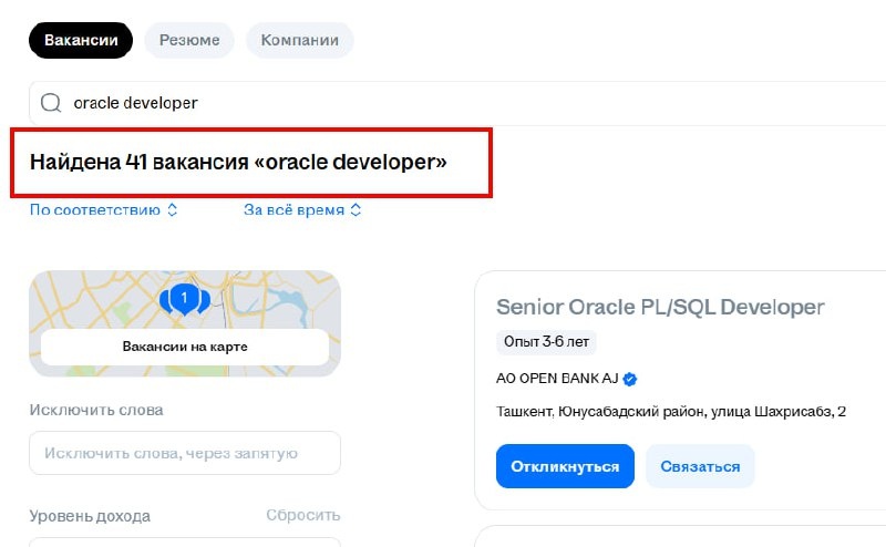 Результаты пассивного поиска работы ⏳ 13 февраля, 3 дня с начала эксперимента Продолжаем. 12го февраля я решил поменять тактику и перейти в активный режим откликов. Я понял, что пассивно висеть я могу и месяц и два - толку не будет. Использую для откликов только площадку HH. Откликаюсь вручную. Есть системы по автоотклику, но считаю их использование не целесообразно. Итак 1️⃣ Стартую отклики ночью 13 февраля. Может и не самое лучше время стратегически - утром у рекрутеров будет завал, тем более накануне 14го февраля, когда все мысли женские “о нем”, а никак не о постучавшемся “Senior Oracle Developer” ❤️ 2️⃣ Пропускаю вакансии про BI, отчетность, естественно DBA. Mix-вакансии типа Forms, Apex со знанием JS и Net, и ЦФТ со своим PL+ 🤯 Всего, на весь СНГ на момент поиска было 41 вакансия. 3️⃣ Так же я воспользовался нейронкой, чтобы писать сопроводительные письма. Честно говоря, раньше я не отправлял cover letter. Но раз рынок поменялся, то надо адаптироваться. Про ИИ Даешь своё C
