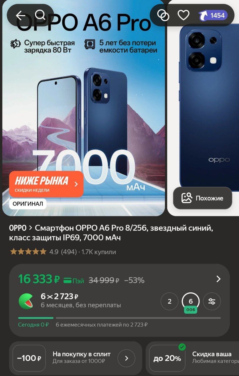 Смартфон OPPO A6 Pro 8/256, звездный синий, класс защиты IP69, 7000 мАч