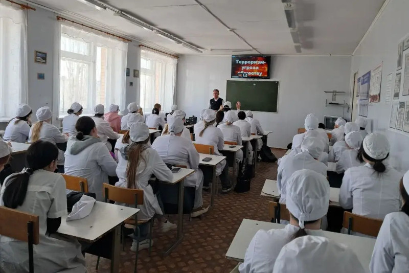 В Камышинском филиале Волгоградского медицинского колледжа состоялось профилактическое мероприятие для студентов первого курса специальностей «Лечебное дело» и «Сестринское дело». Как сообщила infokam.su специалист по связям со СМИ Межмуниципального отдела МВД России «Камышинский» Регина Гундикова, перед учащимися выступил председатель Общественного совета при МО МВД России «Камышинский», член совета ветеранов ОВД Волгоградской области Сергей Дудин. Были рассмотрены вопросы противодействия идеологии терроризма, профилактики незаконного оборота наркотиков и ответственности за совершение преступлений в данной сфере.