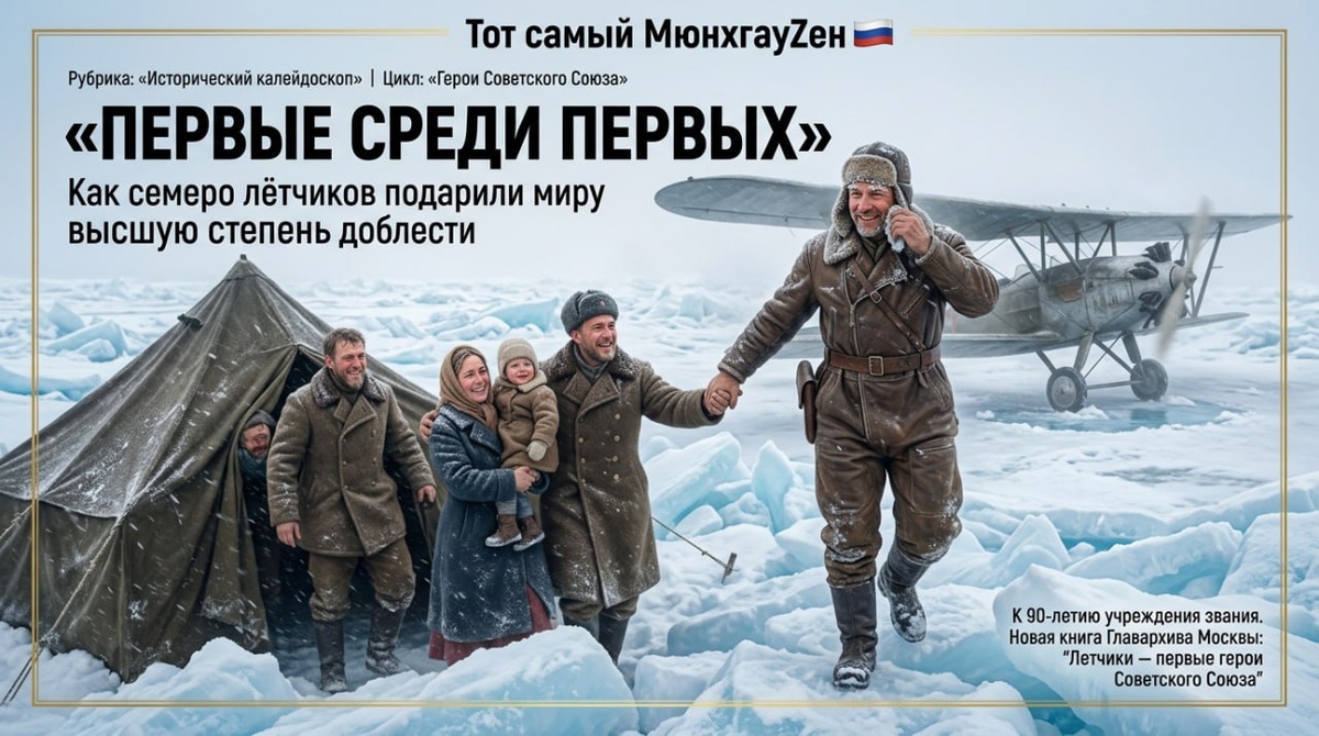 🚨 Рубрика: «Исторический калейдоскоп» Цикл: «Герои Советского Союза: Золотые звёзды многонациональной державы» 📅 Первые среди первых: как семеро лётчиков подарили миру высшую степень доблести Но погода вновь вступила в свои права. После триумфального вылета Ляпидевского лагерь оказался отрезан от мира ещё на месяц. Лишь 7 апреля, когда условия чуть улучшились, к челюскинцам прорвались остальные лётчики. За шесть дней, с 7 по 13 апреля, они совершили 23 рейса, вывозя людей в чукотское становище Ванкарем. Самым результативным оказался Василий Молоков, придумавший подвешивать под крылья самолёта парашютные ящики и переправивший на материк 39 человек. 13 апреля Водопьянов, Каманин и Молоков вывезли последних шестерых полярников и восемь ездовых собак. Радист Кренкель передал последнюю радиограмму: «Прилетели три самолёта. Сели благополучно. Снимаем радио. Сейчас покидаем лагерь Шмидта». 🔹 Рождение Золотой Звезды. Ещё до завершения спасательной операции правительство приняло решение у
