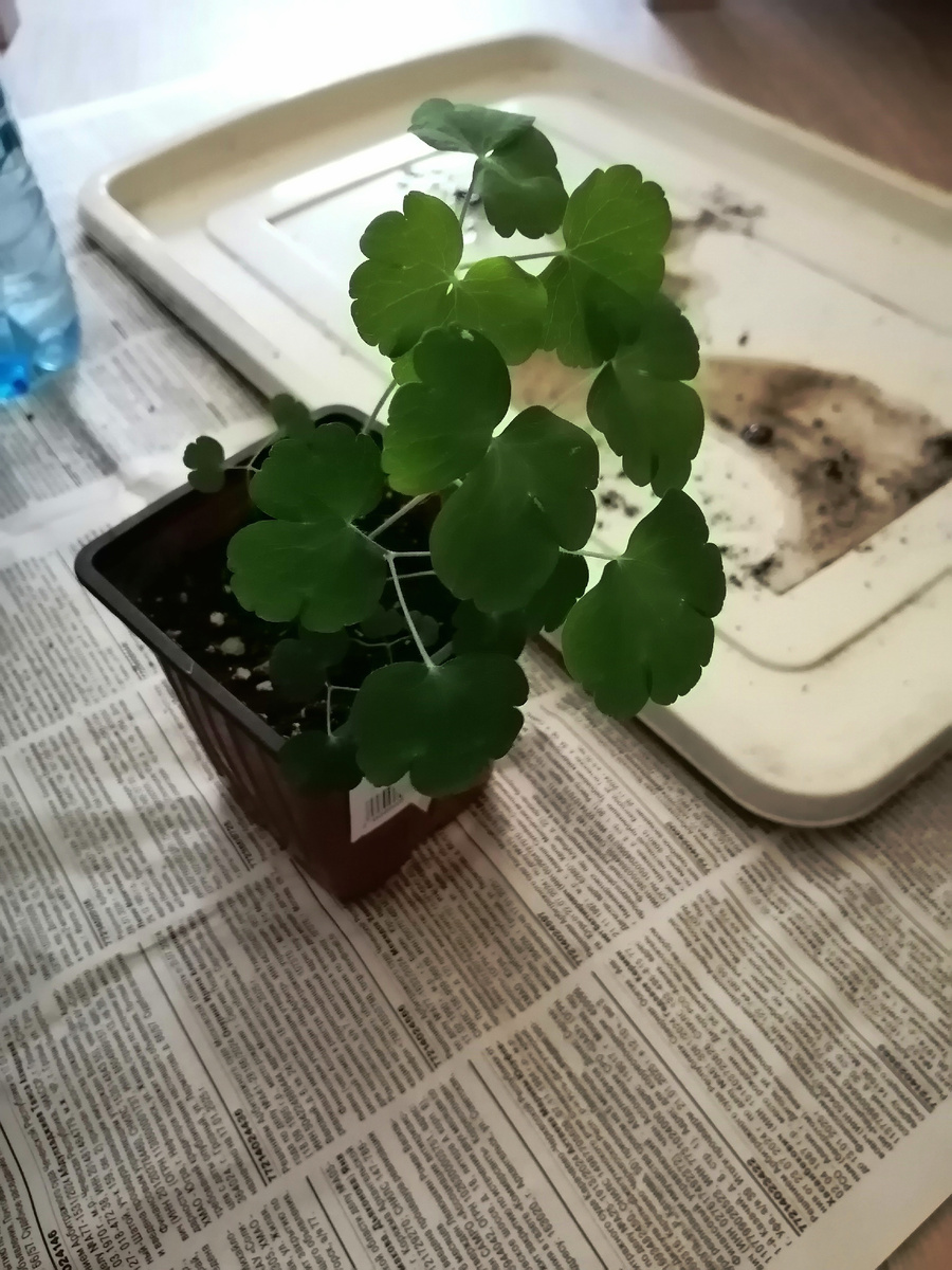 Что-то меня нынешняя невесна совсем умучила - нет желания не только сеять то, что уже давно бы надо, но и пересаживать нуждающихся. Сегодня пришлось взять себя за шиворот, поскольку кто-то вот прямо реально нуждался в увеличении жилплощади. Например, аквилегии. Вопросы, вопросы... Почему эйнселийская, которая должна быть некрупной, изображает из себя лошадь? Ей поллитровой емкости уже явно маловато... Ок, пересадила в литр. С учетом того, что у нас снега по ушки, когда я ее буду высаживать, сдается мне, она в трех будет сидеть) Семиаквилегия как-то более вменяема, но и ей нужно было увеличить объем. И самая скромная, золотистоцветковая, пока все же осталась на старых квартирах. Вот тут можно понять, насколько она пока мельче: Хотя по идее на итого должна быть крупной. Ладно, зацветет, разберемся. Хотя это будет, конечно, только через год. Взошла зеленоцветковая, скоро ее тоже нужно будет рассадить: Вроде и немного сеяла, а на итого аквилегии, похоже, придется частично пристраивать. Л