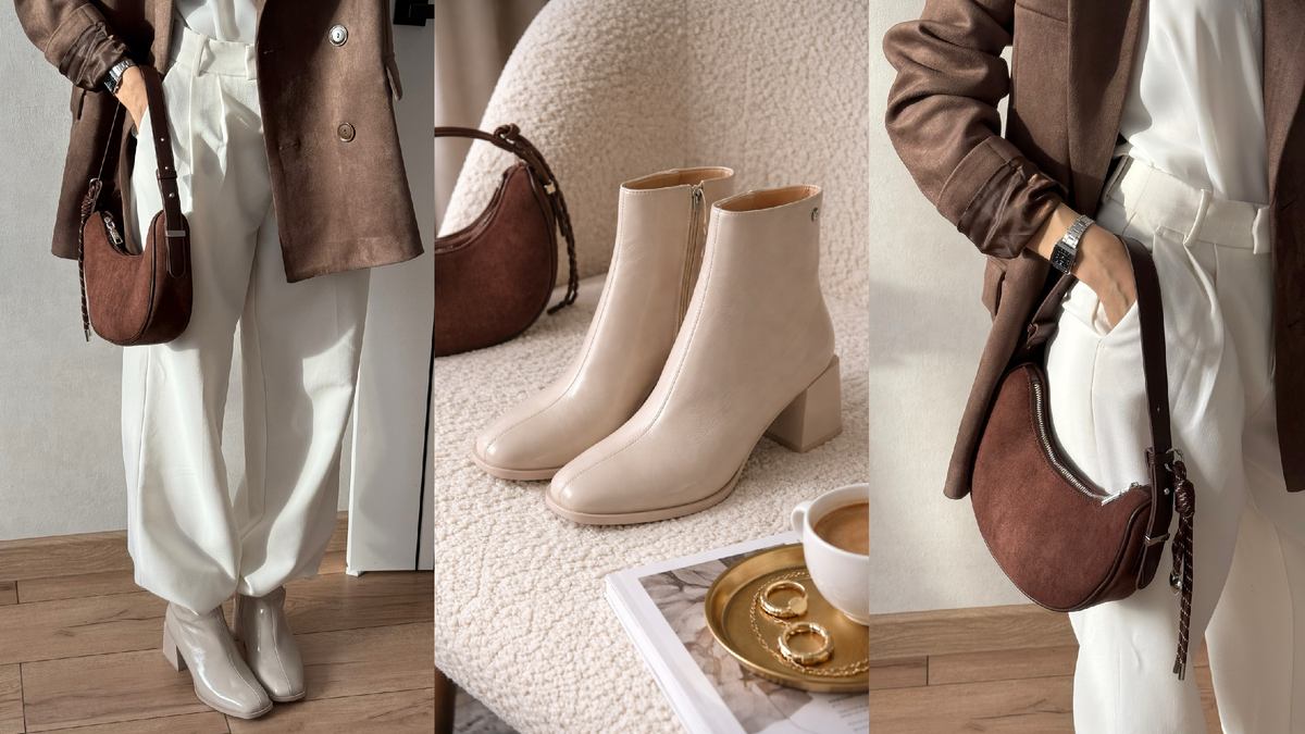 Тёплая бежевая палитра этой весной звучит особенно актуально — мягко, спокойно и при этом универсально. Один из самых удачных примеров — сочетание оттенков, вдохновлённое кофейной гаммой. Светлые ботильоны (арт.W7570259) в оттенке латте выглядят деликатно и легко вписываются в повседневные образы. Такой цвет не перегружает сочетания и отлично работает как с базовым гардеробом, так и с более контрастными элементами. Мягкий бежевый оттенок визуально освежает образ и делает его легче. Универсальная модель на каждый день, которая легко сочетается с разными стилями. Глубокий шоколадный оттенок сумки (арт. 105006J0) добавляет образу выразительности. Мягкая форма создаёт красивый контраст со светлой обувью и делает комплект более собранным. Контраст светлого и тёмного в одной гамме — простой приём, который всегда работает. Он добавляет глубины, но сохраняет ощущение спокойствия и баланса. А как вы относитесь к светлой обуви?