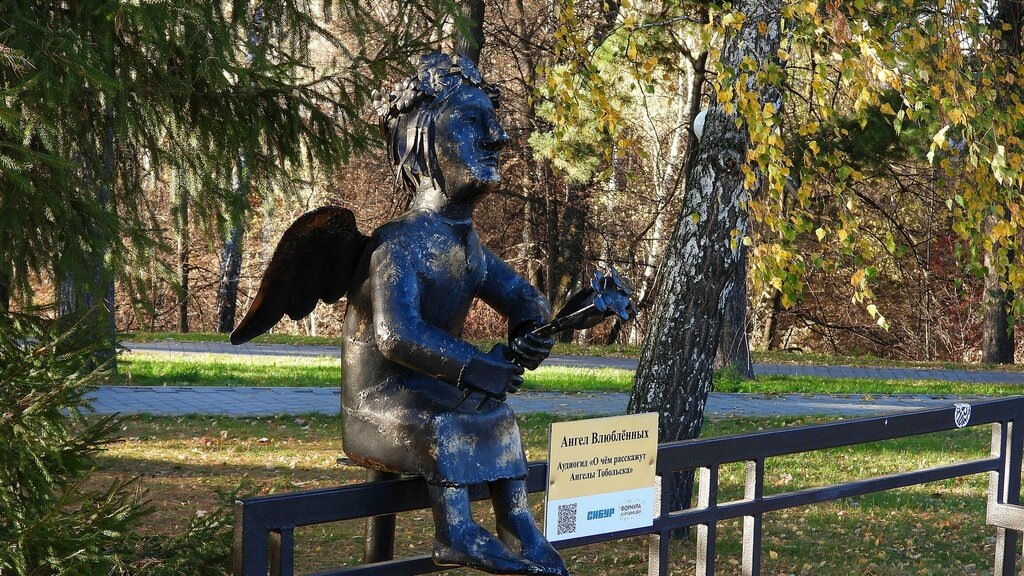 В тени сквера Декабристов, что раскинулся неподалеку от Завального кладбища, рядом с памятником Женам Декабристов, застыл в бронзе "Ангел влюблённых". Этот нежный образ, держащий в руках трогательный букет, хранит память о страстной любви юного поручика Ивана Анненкова и очаровательной Полины Гебль. Француженка, чья красота покорила сердце офицера, последовала за ним в суровую Сибирь, в Тобольск, доказав силу истинных чувств. *** Про ангелов г. Тобольска уже есть песни. Вся подборка по ангелам тут.