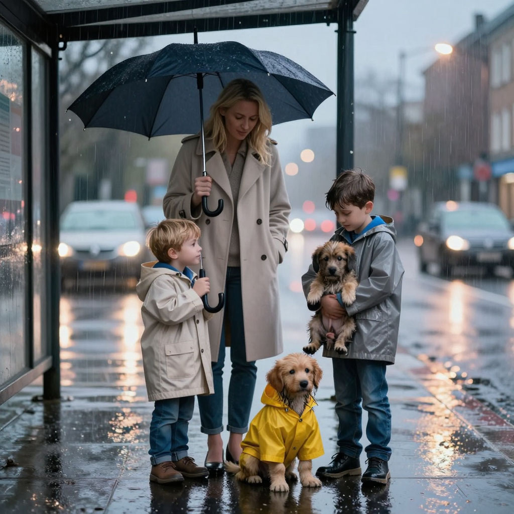Дождь стучал по крыше старой автобусной остановки, когда я прижимала к себе пятилетнего сына Мишу и смотрела, как машина бывшего мужа скрывается за поворотом. В руках у меня был пластиковый пакет с парой вещей, кошелёк с тремя тысячами рублей и… коробка, из которой доносилось тихое повизгивание.