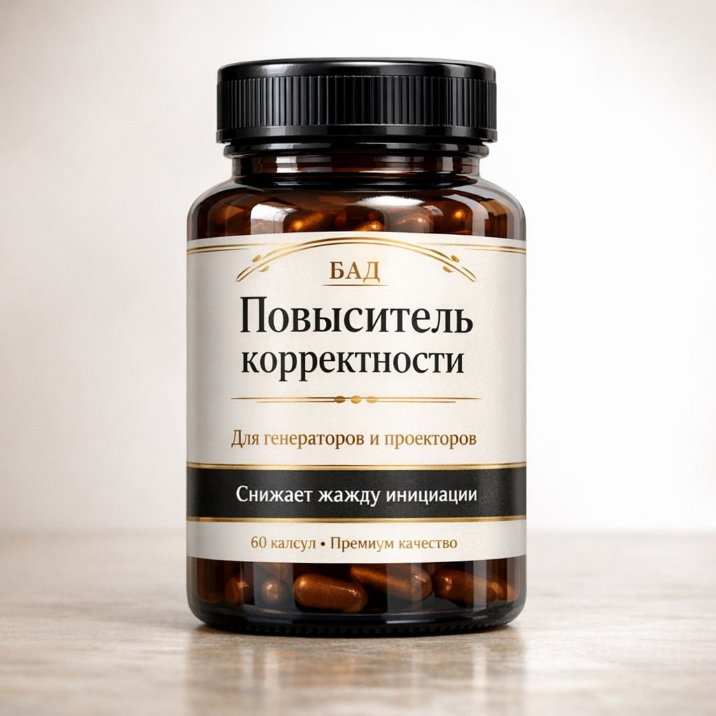 ? 😆 Ты генератор или проектор, а внутри иногда такой манифесторский сквозняк, что аж тапки улетают? 😆 Потом лажанул, отморозился, прифигел и сидишь думаешь: «Ну и зачем я это зафигачил без отклика и без приглашения?..» Спокойно, чел. Наш интернет-магазин не кукует — мы работаем на благо бодиграфа! И потому представляем новинку сезона: Повыситель корректности™ Для генераторов и проекторов Снижает жажду инициации. Успокаивает внутреннее «ща сам всё решу». Возвращает вменяемость туда, где уже начинался атас. 🔥 х7 к умению не врываться первым 🔥 х10 к паузе перед гениальной идеей «надо срочно всем написать» 🔥 х12 к таланту дождаться отклика или приглашения и не пороть дичь 🔥 снижает перегрев ложного Я до комфортного «ну ладно, подожду» 🔥 устраняет зуд самозапуска с ароматом «а вдруг без меня не справятся» Как работает? Очень просто, дружище. Наносишь Повыситель корректности™ на свои духовные порывы — и вместо привычного: «Так, я пошёл, я решил, я всех спас» получаешь благородное: