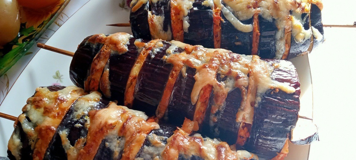• Выровнять баклажаны по длине • Вставить шпажку по центру (она должна выступать на 5–7 см) Сделать спиральный надрез по всей длине с шагом 1–1,5 см, прорезая до шпажки. Аккуратно растянуть баклажан, чтобы удобно было начинять. 3️⃣ Формирование Заполнять каждый разрез начинкой небольшими порциями. После этого слегка сжать баклажан руками, чтобы начинка «сцепилась» с ним. Смазать сверху топлёным маслом. 4️⃣ Перед запеканием Выложить на противень. По центру нанести полоску сметаны или майонеза. Сверху слегка присыпать тёртым сыром. 🔥 Выпекание Запекать при 180°C (режим «верх-низ с вентилятором») около 20 минут. Ориентир: баклажан должен стать мягким, но сохранять форму. 🍽 Подача Подавать горячими с сметанным майонезом или любимым соусом. 💛 Понравился рецепт? Поставь реакцию — это помогает понять, что готовить дальше! #баклажаны@UsefulDelights