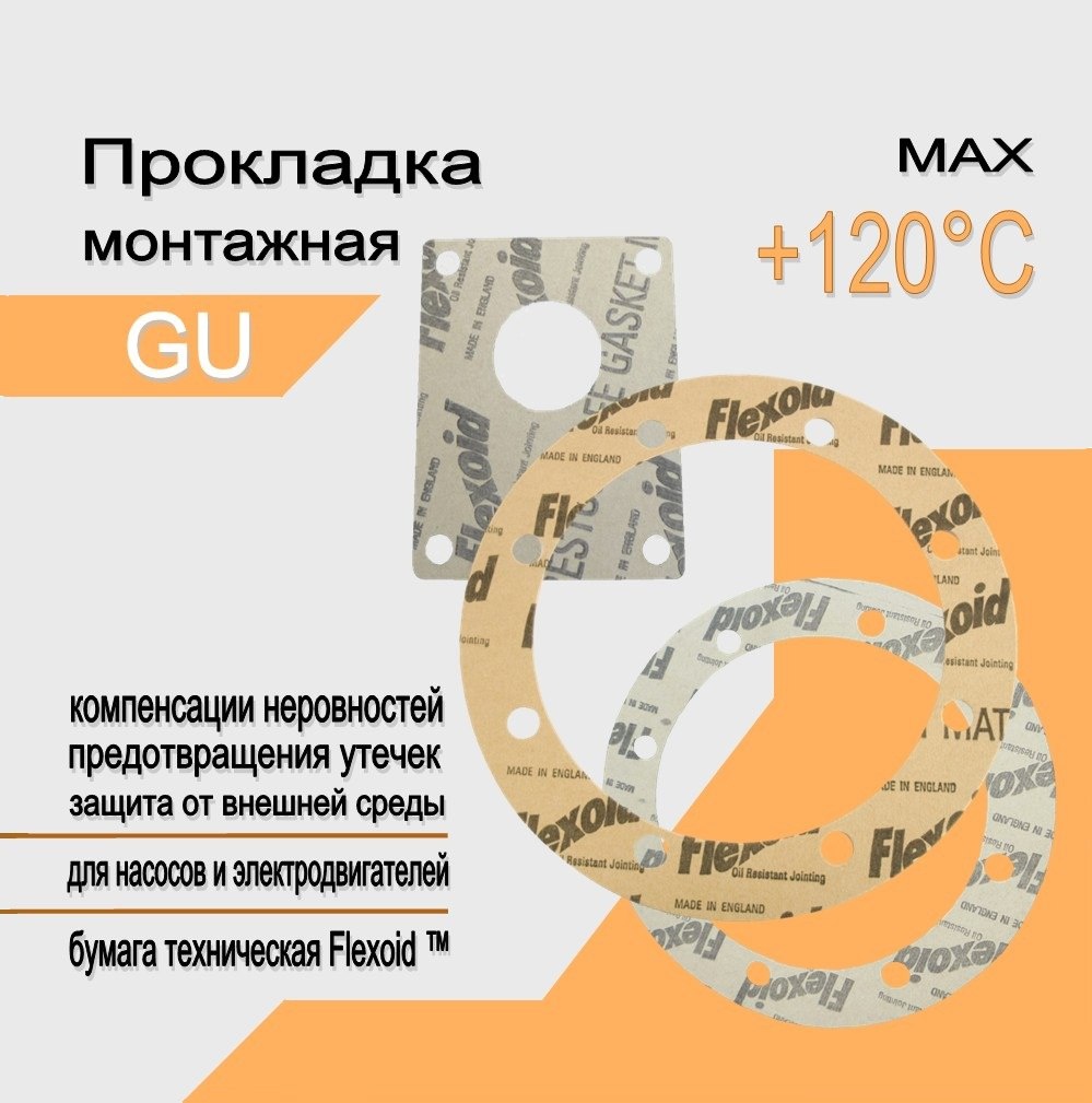 Наиболее популярной для изготовления прокладок является техническая бумага FLEXOID ™— это пластифицированный прокладочный материал на основе целлюлозы, пропитанный желатином на основе каучука. Она известна своей устойчивостью к воздействию бензина, масла, воды. Однако она имеет и недостатки - низкая термо- и химическая стойкость, соответственно данный материал не рекомендуется для контакта со щелочами, кислотами и паром. Основной сферой применения этого материала является автомобилестроение, где она широко используется при сопряжении различных деталей, например водяных и топливных насосов. Примером использования технической бумаги FLEXOID ™ в масляной гидравлике является прокладка монтажная серия GU — это элемент, используемый для компенсации неровностей, предотвращения утечек и защиты от воздействия внешней среды при сопряжении гидронасоса и электромотора с использованием колокола. 💻 Читать новости на САЙТЕ или в МАКСе