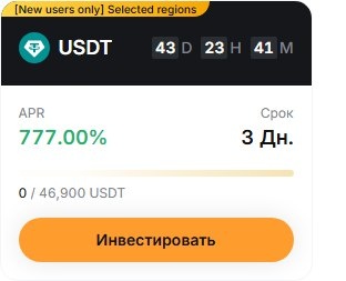 💻 Что делать? ➡️ Регистрация на Bybit 🟠 Earn USDT 🔴 APY: 777.0% 🔴 Осталось: 469 млн USDT 100% ⏰ Срок: 3 дн. 👉 Купить кус можно в NVS SHOP 👉 Прокси беру на proxyline промо AllWin 👉 Антидетект браузер ADS промо на 5% ALLWIN5 👉 Антидетект браузер ADS скидка 5-20%❕ Гайд по созданию фермы