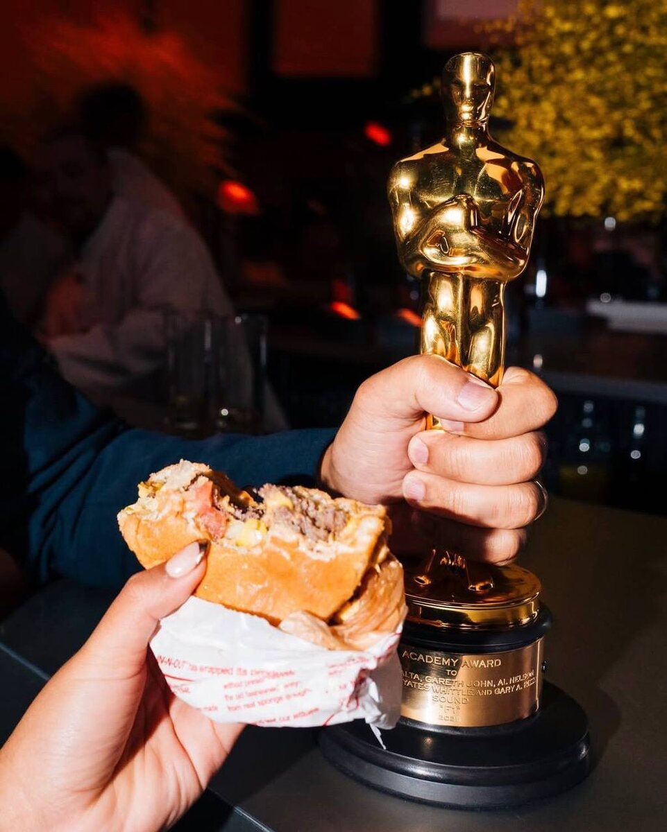 Фото вчерашнего вечера – Оскар и бургеры с пост-церемониальной вечеринки Vanity Fair. Помимо бургеров, говорят, популярностью пользовалась текила. Что пил пролетевший мимо заветной статуэтки Тимоти Шаламе – не уточняется.