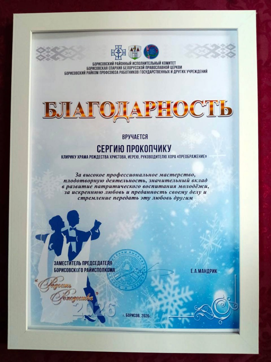 Иерей Сергий Прокопчик награждён благодарностью по итогам идеологической работы Борисовского района за 2025 год