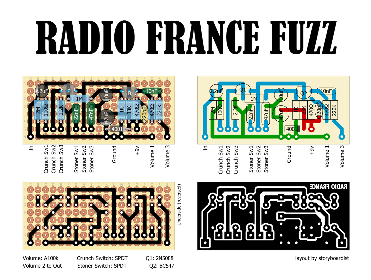 В 1990-е годы какие-то гениальные французские гитаристы (возможно, из андеграундной сцены) обнаружили это свойство старых репортёрских магнитофонов, выдрали из них предусилители и перепаяли в педали. Так родилась первая Radio France Fuzz.