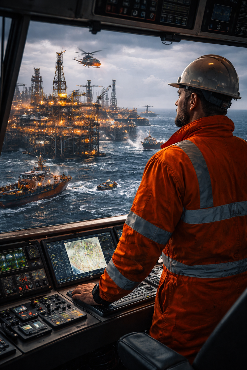 Когда я впервые попал на поле, я просто обалдел. Вертолёты летают, supply vessels, исследовательские суда, diving vessels, construction barges, multiple activities одновременно. К одному boat landing могут подойти сразу несколько судов, и у каждого своя задача, люди, грузы, оборудование, ожидания. Ощущение не работы, а логистического хаоса на стероидах.