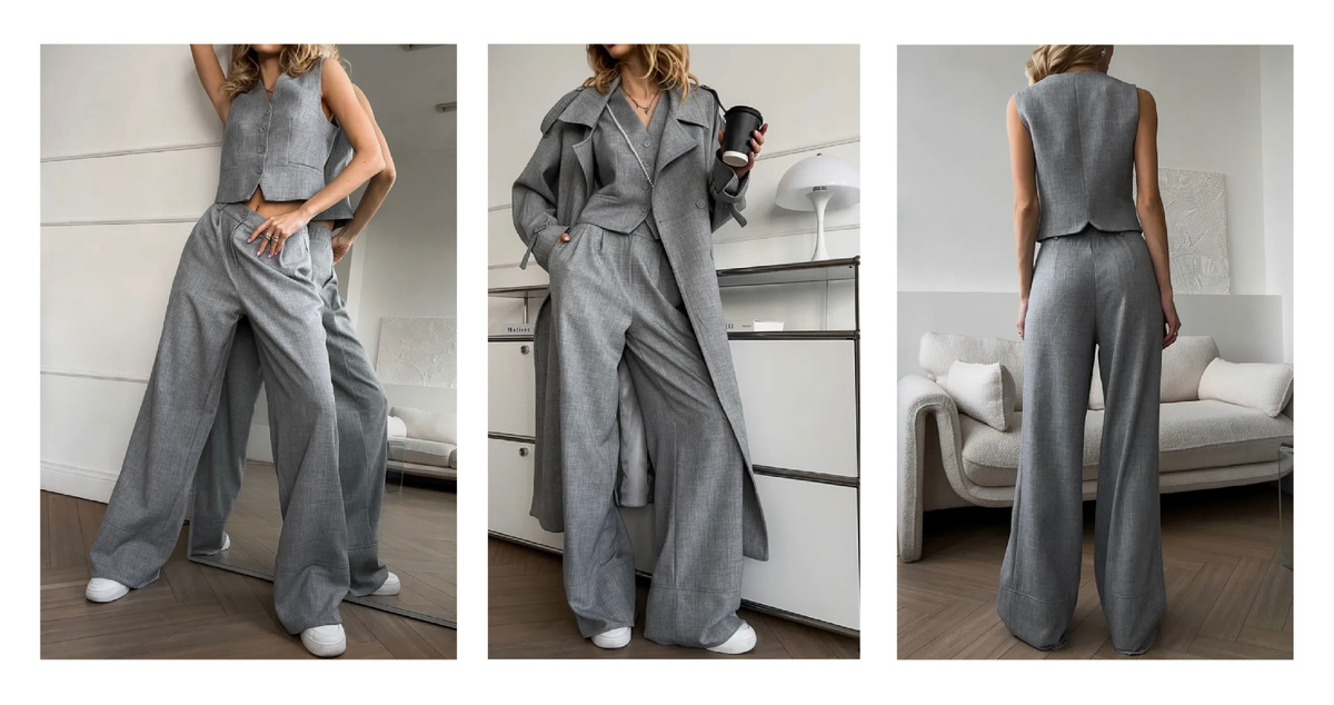 Иногда на маркетплейсах появляются вещи, которые выглядят как полноценная система, а не просто одежда. Именно к таким относится костюм-тройка — с жилеткой и тренчем. Он сразу попадает в топ поисковых запросов: «женский брючный костюм тройка 2026», «костюм с жилеткой и тренчем», «многослойный костюм женский», «smart casual костюм», «деловой костюм нового формата». Разберём его как стилист и ответим на главный вопрос: