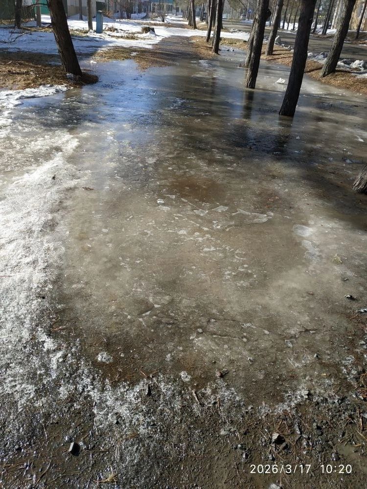 Тротуар по ул.Советской возле дороги в 1 садик утром покрыт льдом,а как растает,то огромная лужа.И почти весь тротуар от этого места до Ленинской с весны и до осени не пройти,после каждого дождя всё в воде. — — — Есть новость или интересная информация? Поделитесь ею с нами через чат-бот: t.me/kirovskydvbot ВК | ОК | МАХ