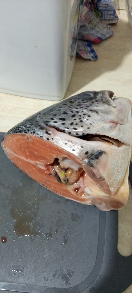 В прошлом году четыре раза в весенние месяцы там была. Четыре!!! И один из них был рыбья кость. И в этом году опять! Опять рыба! Но на этот раз все сильно хуже. В прошлом году кость просто провалилась на фгдс, а в этом вытаскивали крокодильчиком. Началось все с этой головы семги, масса 1 кг. Купила, чтоб хондропротекторы в меня шел. И Омега. Отрезала кусок Красной, он большой, посолила, утром стала есть и надо же, подавилась! Откуда она там взялась, год с костями все хорошо было! Встало колом. Дальше больше, читайте. Приезжаю в травму. Больно. Оформляют и начинается тягучка. В прошлом году быстро, а тут началось. Миллион бумаг, врач все идет и идёт, а мне все хуже. Сползаю по стене, рядом мужчина нерусской наружности, я ему шепчу: спасите меня, если упаду. Мужик мгновенно реагирует, идет к ресепшн и начинает качать права. Ко мне приходит врач. Рентген, потом фгдс три раза. Сначала просто шланг, потом шланг с хватательной штукой, потом опять просто. Вытащили. Но перезагрузка во