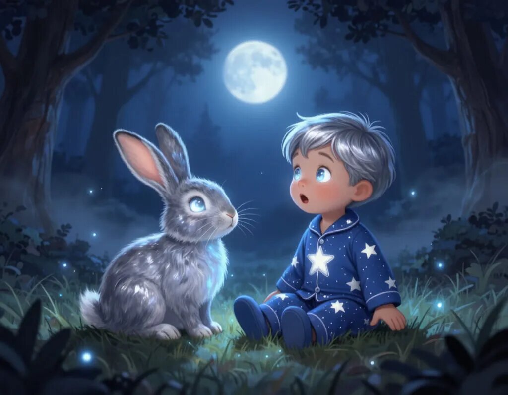 Сказка про Тимку и лунного кролика. Эта сказка для детей 4–6 лет, которые боятся темноты. Она поможет малышу взглянуть на ночное время по‑новому — не как на что‑то пугающее, а как на источник волшебства и добрых приключений. Тёплая и уютная история про Тимку и лунного кролика снимет тревожность, подарит чувство безопасности и научит видеть чудеса даже в темноте. Жил‑был мальчик по имени Тимка. Ему было пять лет, он любил строить замки из кубиков, играть с плюшевым мишкой и слушать мамины сказки перед сном. Но была у Тимки одна беда: он очень боялся темноты. Как только в комнате гасили свет, мальчику казалось, что в углах прячутся страшные тени, а за окном шуршат неведомые существа. Однажды вечером мама, как обычно, поцеловала Тимку на ночь, погладила по голове и выключила свет. Тимка натянул одеяло до самого носа и закрыл глаза, стараясь не думать о темноте. Но вдруг он услышал тихий шёпот: — Тимка, ты спишь? Мальчик вздрогнул и приоткрыл один глаз. И тут он увидел невероятное: его игр