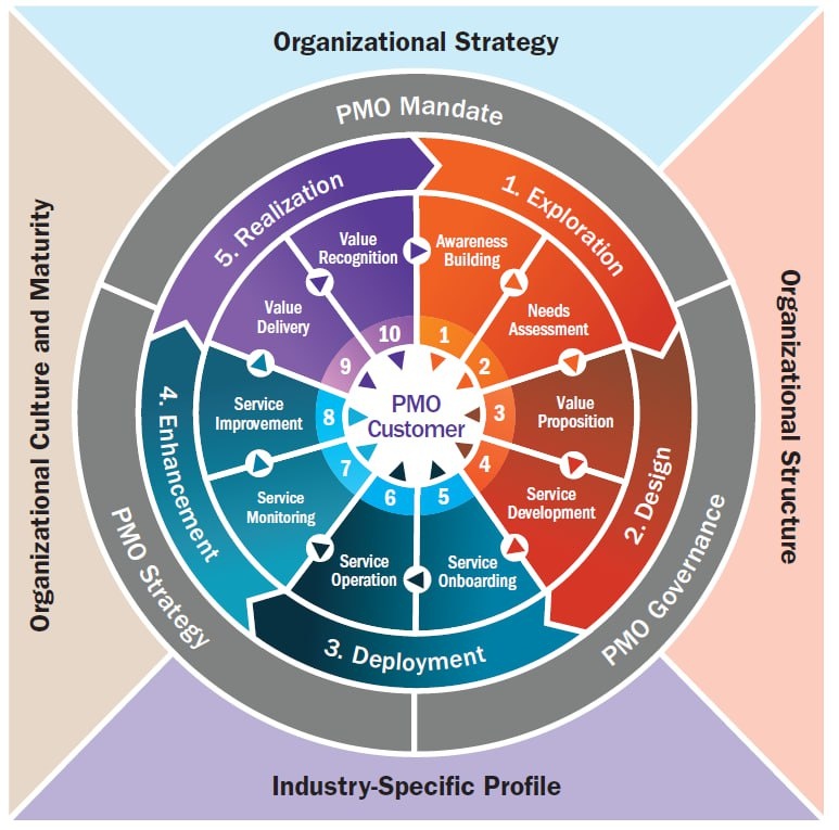 Начинал этот пост как обзор обновленного стандарта PMO Value Ring (который сам сертифицировал пару лет назад), но в процессе поймал мощный инсайт. Поэтому дочитайте до конца — здесь не только про методологию. Проектные офисы больше не делятся на «поддерживающие» или «стратегические». PMI представил свежее руководство «Project Management Offices: A Practice Guide». Главный сдвиг парадигмы: мы выбираем не тип структуры, а ценность, которую она приносит стейкхолдерам. В чем суть новой архитектуры В центре всего — Клиент PMO (топы, менеджеры, владельцы продуктов). Весь офис строится вокруг их болей и потребностей. Фреймворк опирается на четыре столпа: базовые элементы организации (культура и стратегия), структурные компоненты (мандат и полномочия), цикл клиентского опыта (от исследования до поставки ценности) и операционный маховик из 10 шагов, который превращает услуги PMO в непрерывный поток пользы. Четыре столпа эффективного PMO: — Контекст (Organizational Baseline): Фреймворк треб