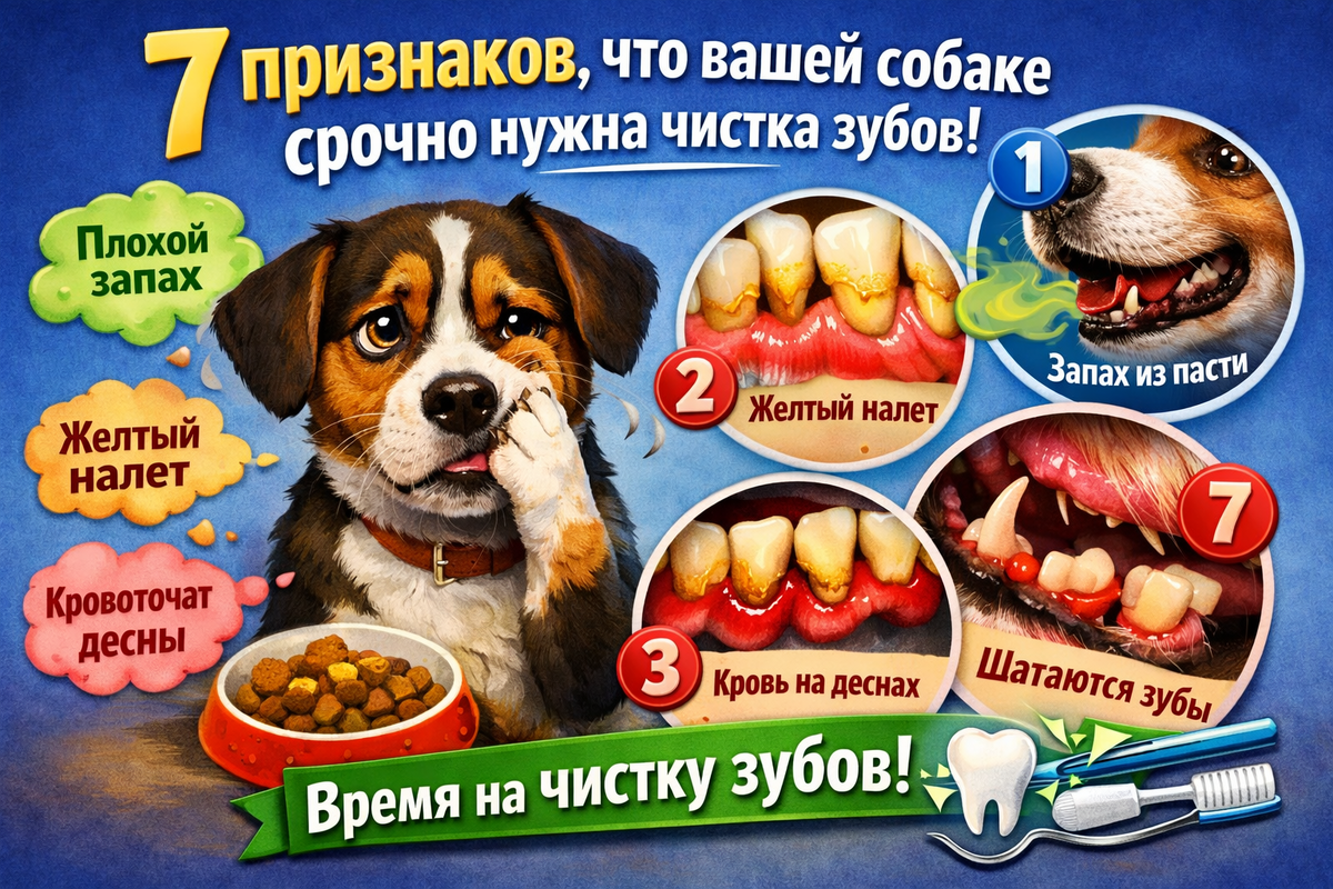 Здоровые зубы — важная часть общего здоровья собаки. Однако многие владельцы начинают обращать внимание на состояние зубов питомца только тогда, когда появляется сильный неприятный запах из пасти или собака начинает отказываться от еды. На самом деле проблемы с зубами развиваются постепенно. Сначала появляется мягкий налёт, затем он превращается в твёрдый зубной камень. Если его вовремя не удалить, могут начаться воспаление десен, боль и даже потеря зубов. В хорошем груминг салоне можно провести безопасную ультразвуковую чистку зубов и предотвратить серьёзные проблемы. Но как понять, что вашему питомцу уже нужна эта процедура? Рассмотрим 7 признаков, на которые обязательно стоит обратить внимание. Это самый распространённый и заметный сигнал. Если из пасти собаки появился сильный, неприятный запах — чаще всего это признак скопления бактерий и зубного налёта. Со временем бактерии начинают активно размножаться на поверхности зубов и под десной, что приводит к воспалению. Запах становится